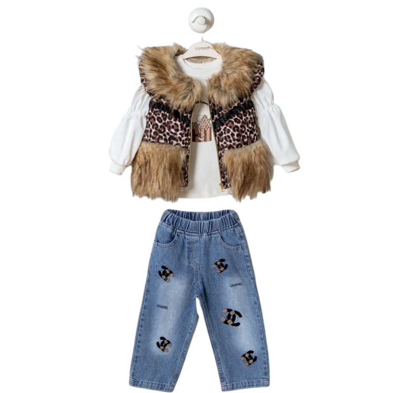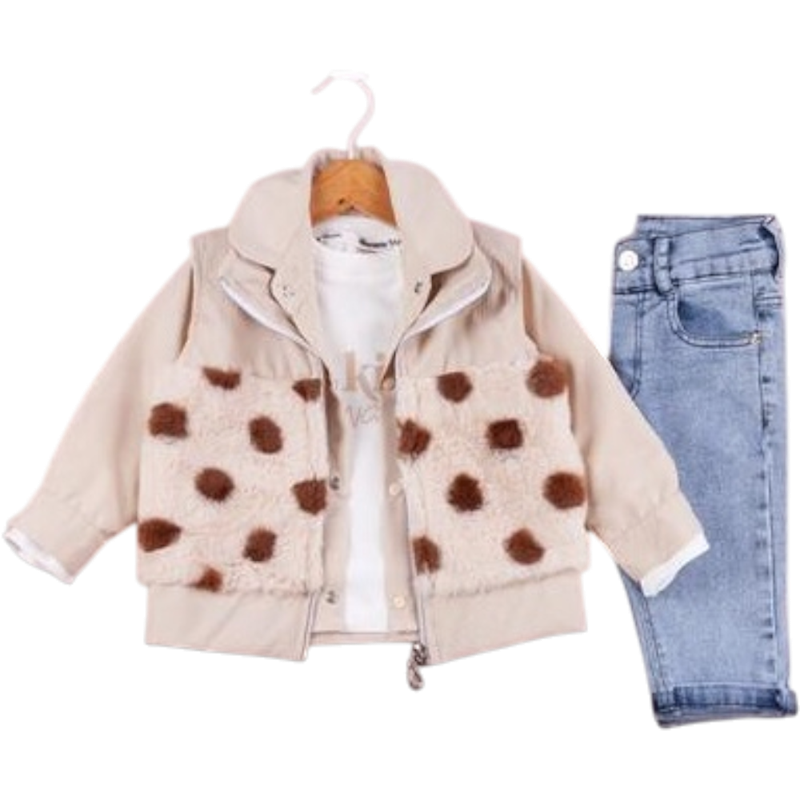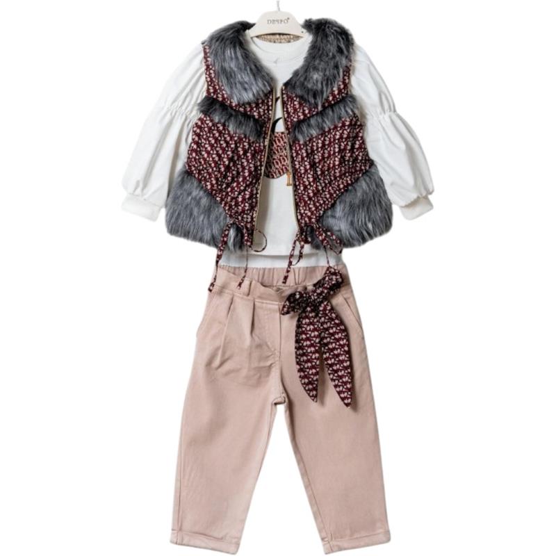 26321 toptan 2-5 yaş arası kız çocuklar için yelekli üç parçalı mevsimlik takım elbise
