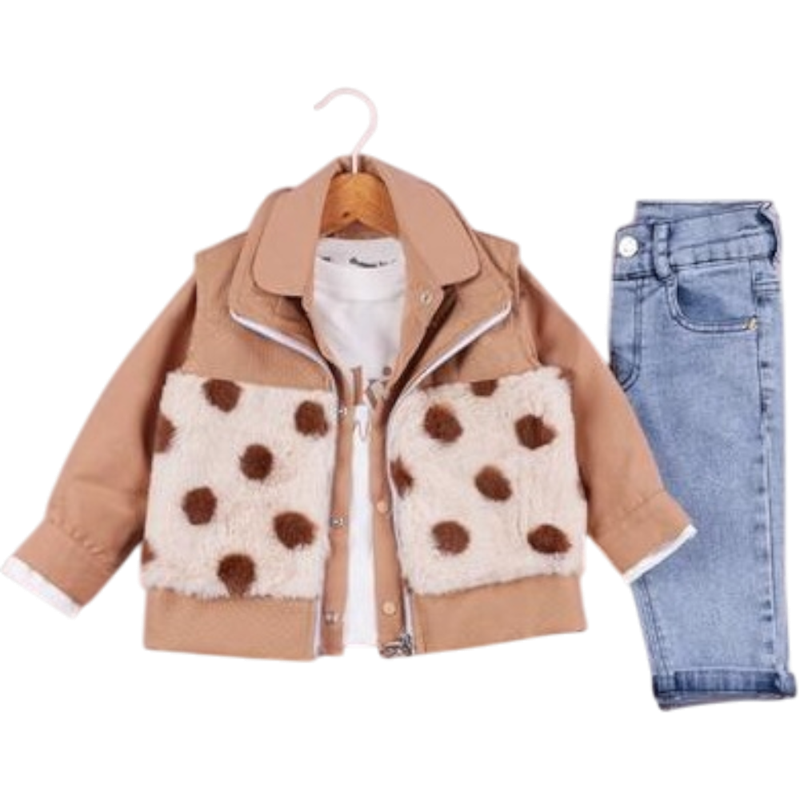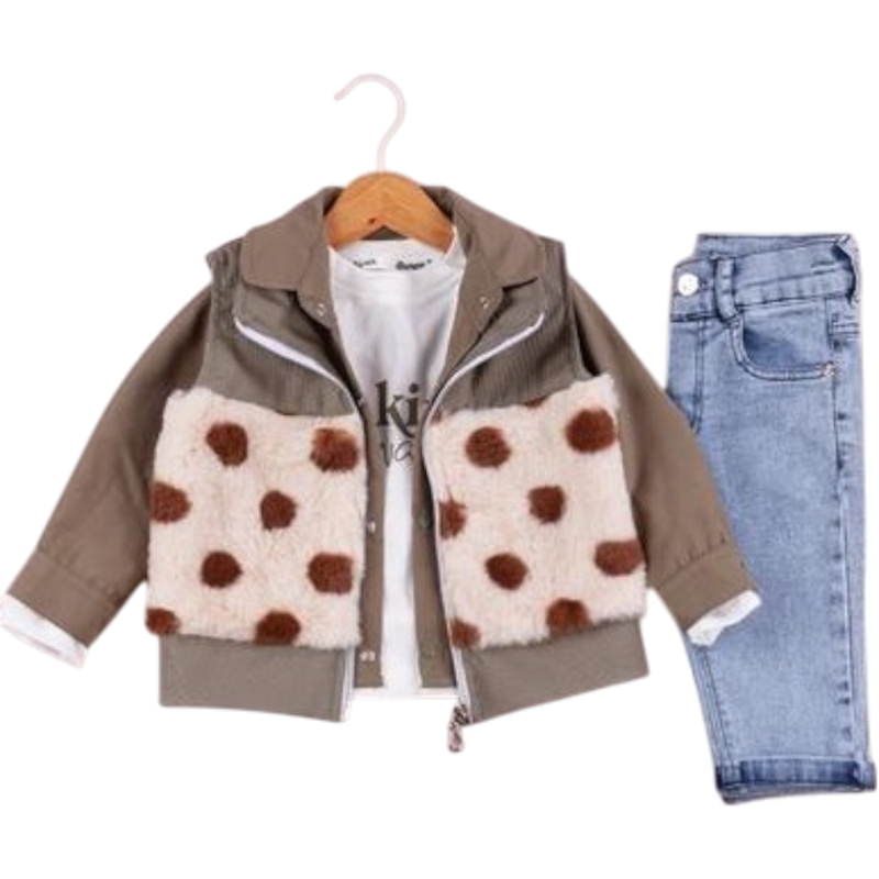6352 toptan 6/9 yaş kız çocuklar için üç parçalı mevsimlik kot pantolonlu takım elbise