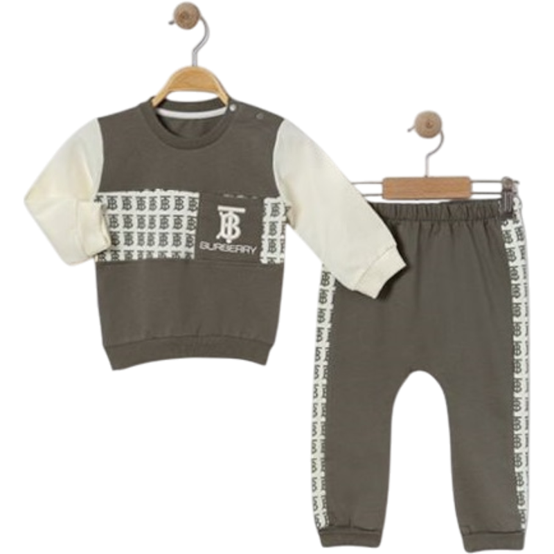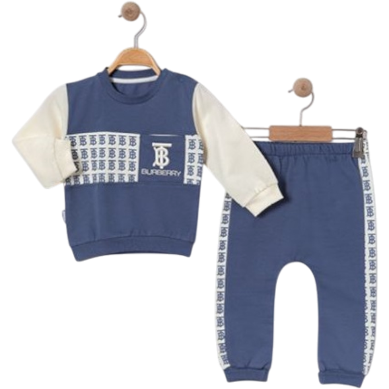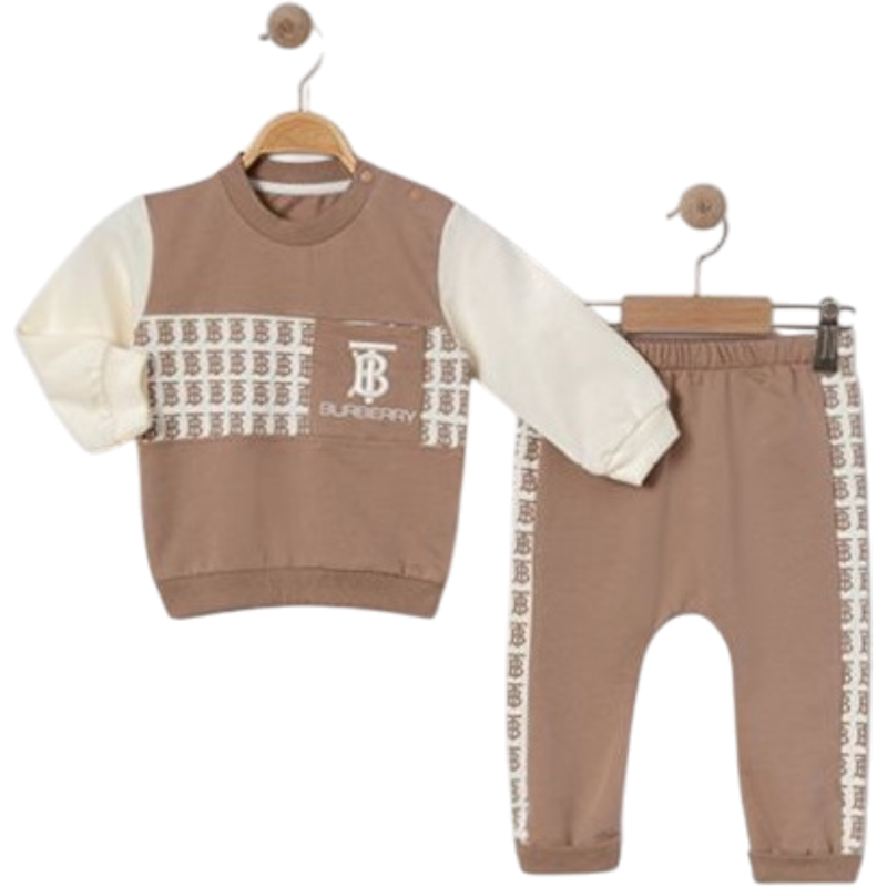 1332 toptan 6/24 ay bebekler için BURBERRY nakışlı ikili mevsimlik takım elbise