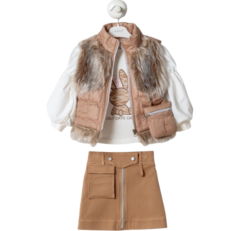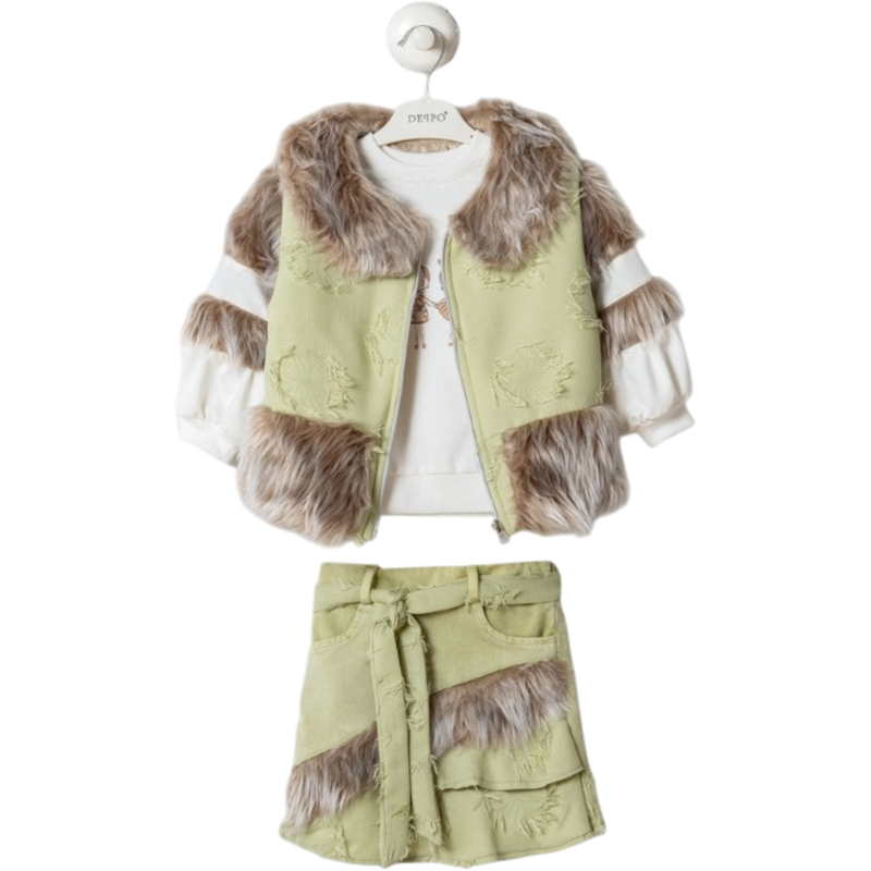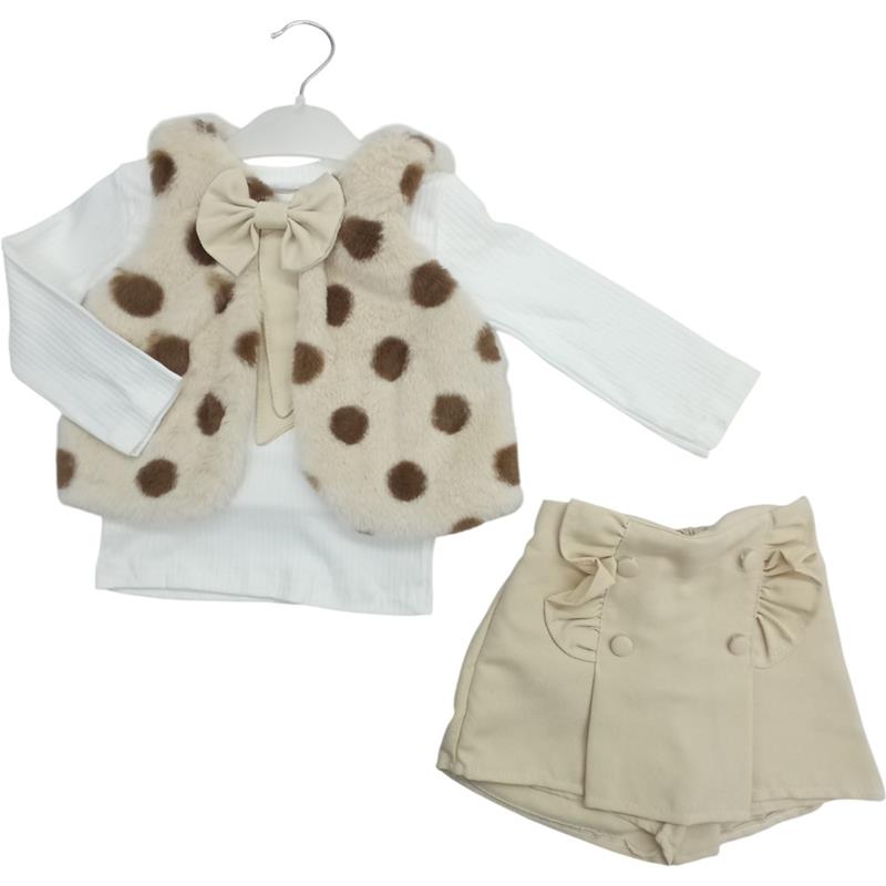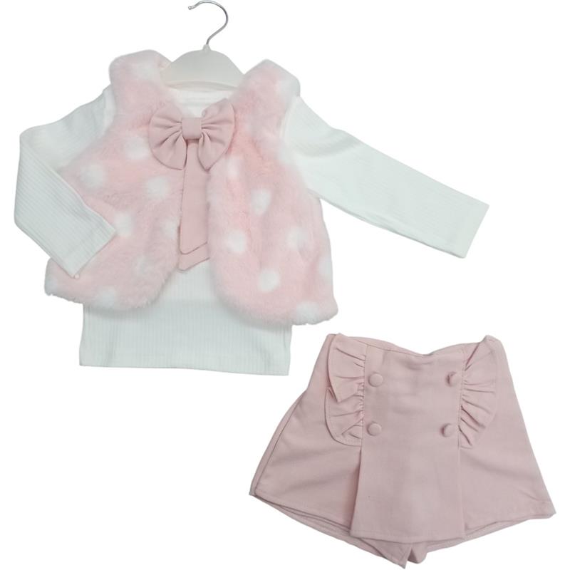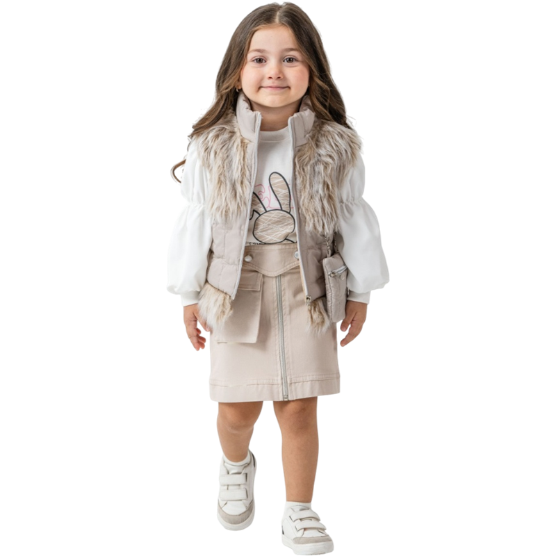 4156 toptan 2/5 yaş kız çocuklar için mevsimlik yelekli.şort-etekli üç parçalı takım elbiseler