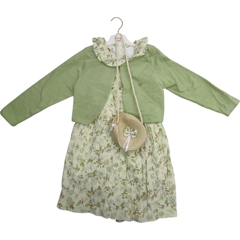 7271 toptan 2/5 yaş kız çocukları için bolerolu,çantalı elbise