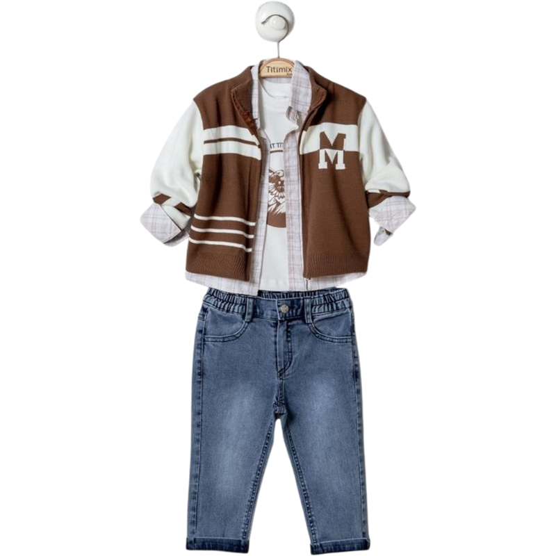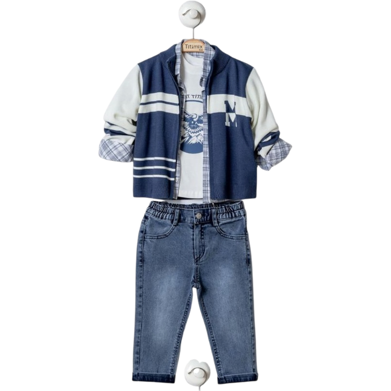 26609 toptan 9-24 aylık erkek çocuklar için kot pantolonlu dört parçalı mevsimlik takım elbise