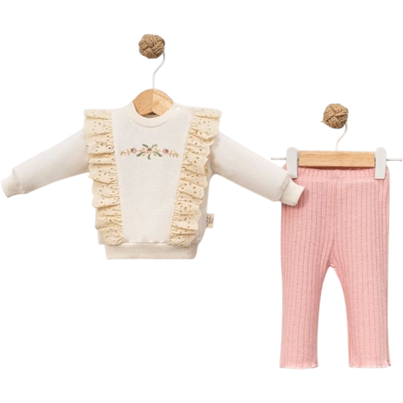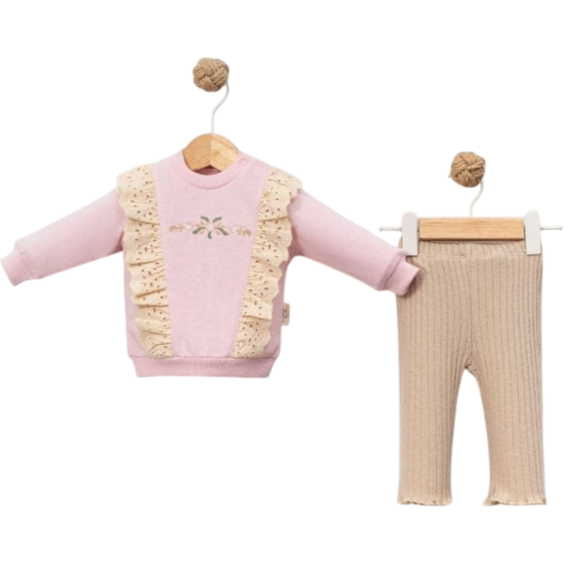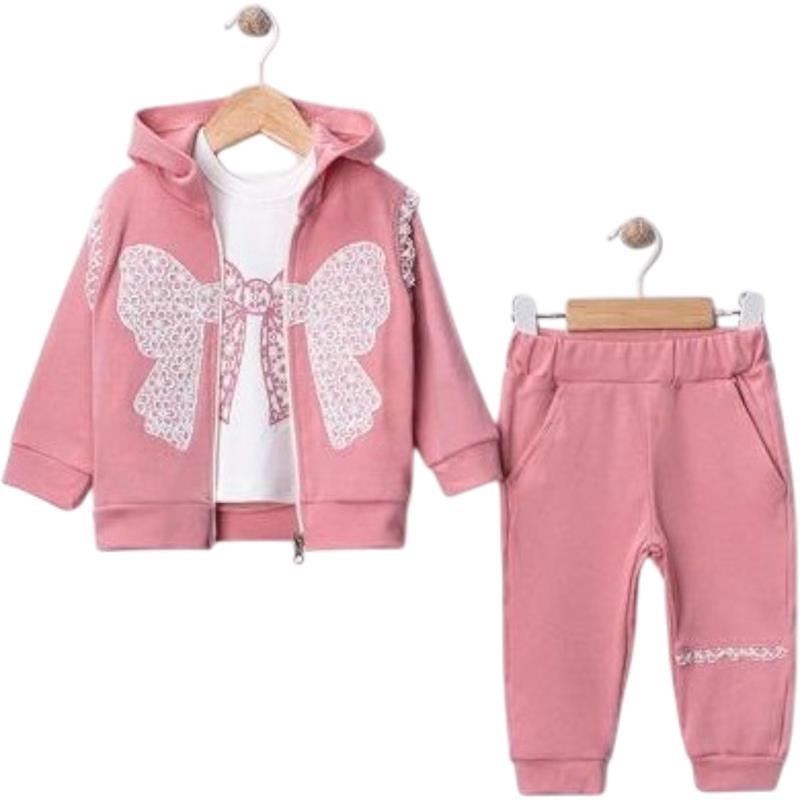 25431 toptan 9/24 ay arası kız çocukları için dantel kelebekli üçlü mevsimlik takım elbise