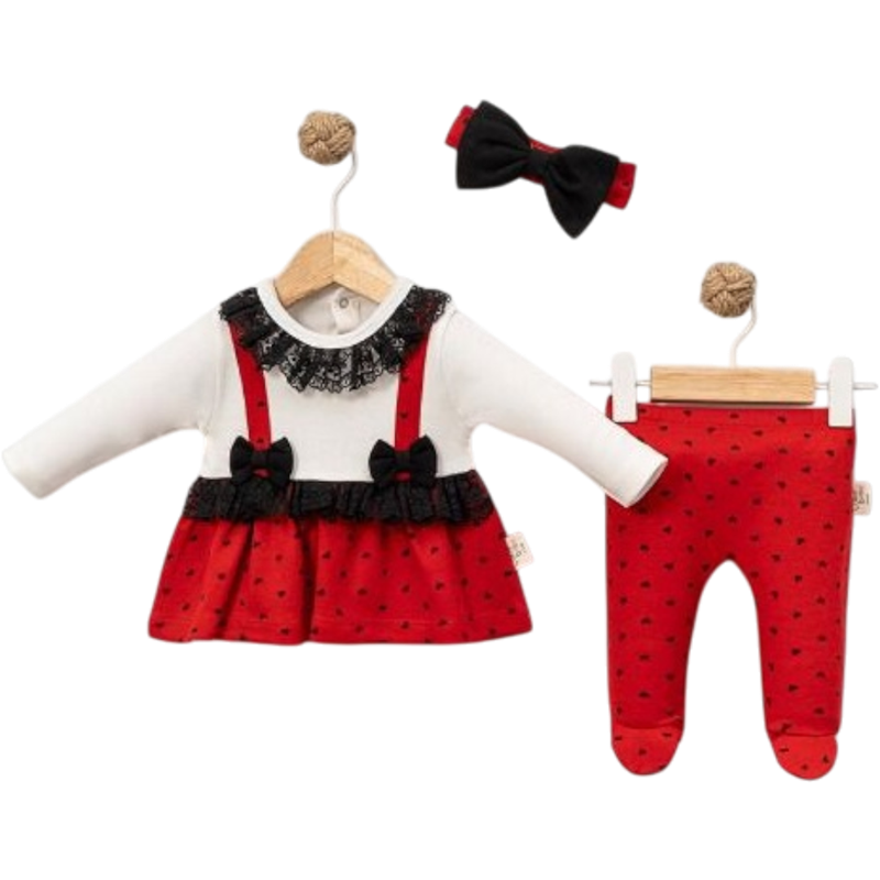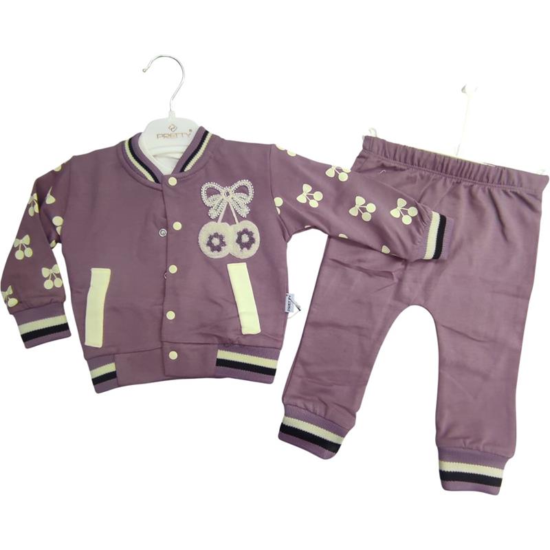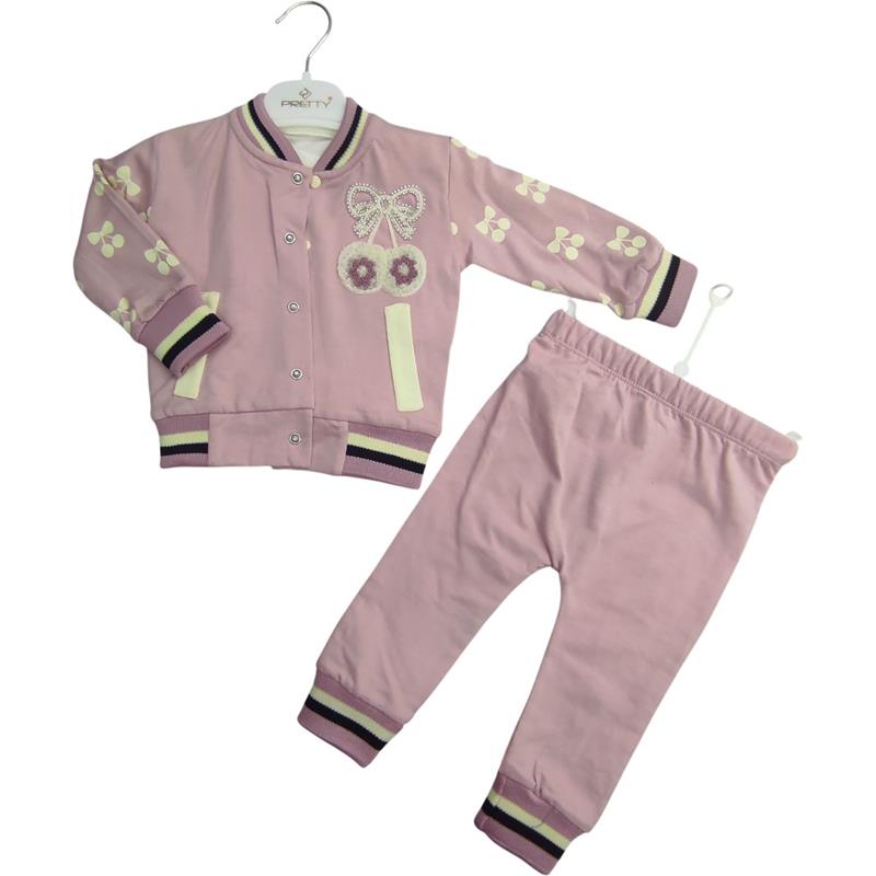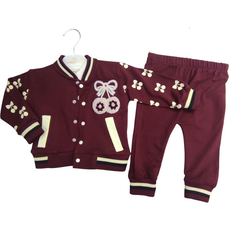 5244 toptan 6/24 aylık kız bebekler için kiraz nakışlı mevsimlik üçlü takım elbise
