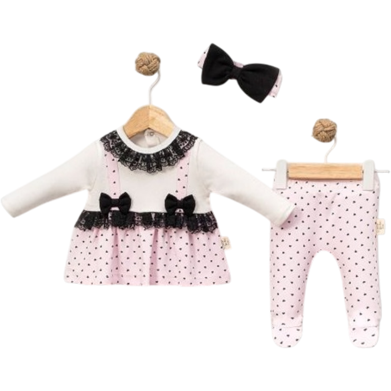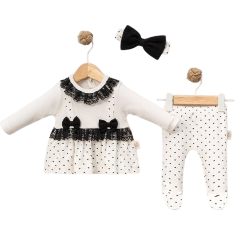 8059 toptan 3-6 aylık kız bebekler siyah dantelli için ikili takım elbise