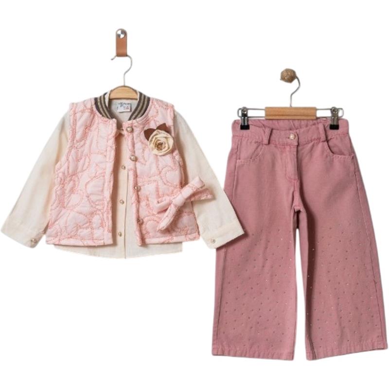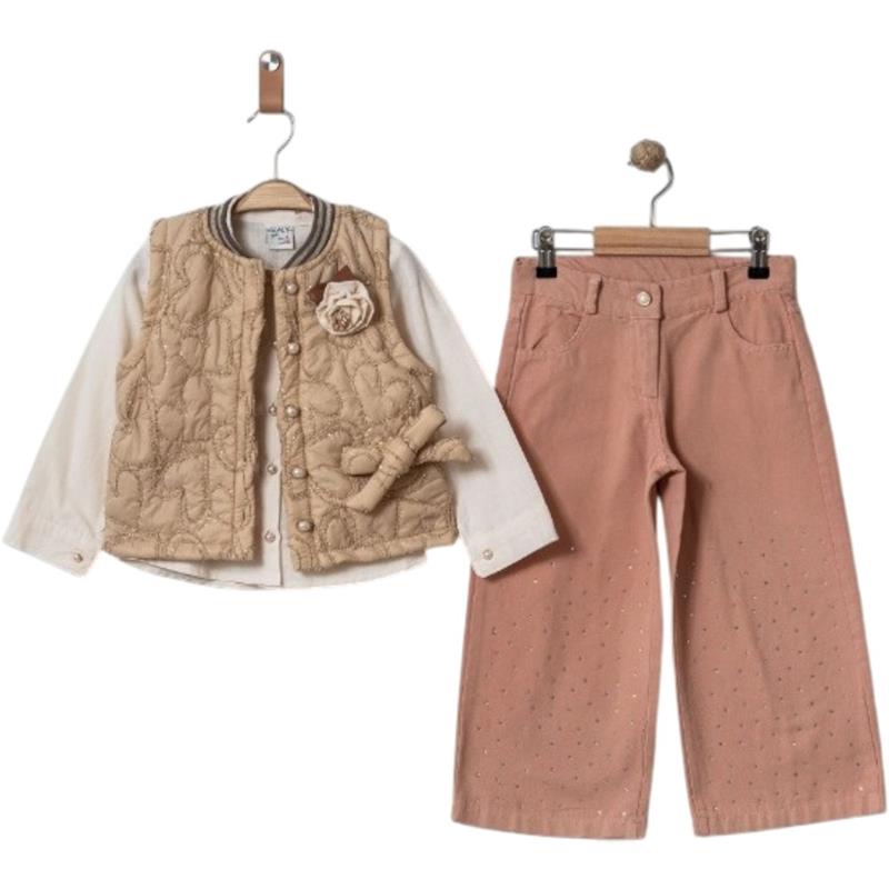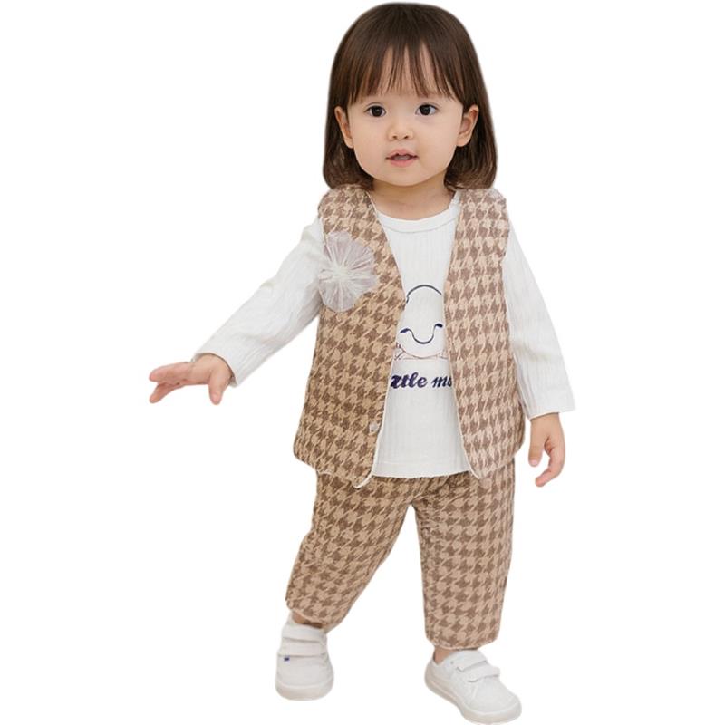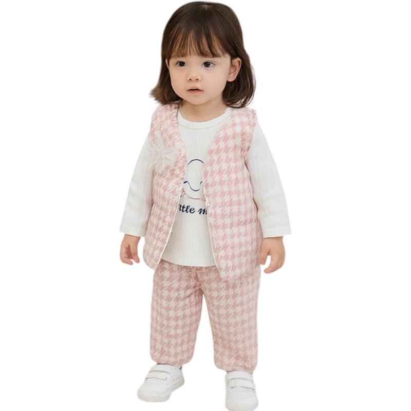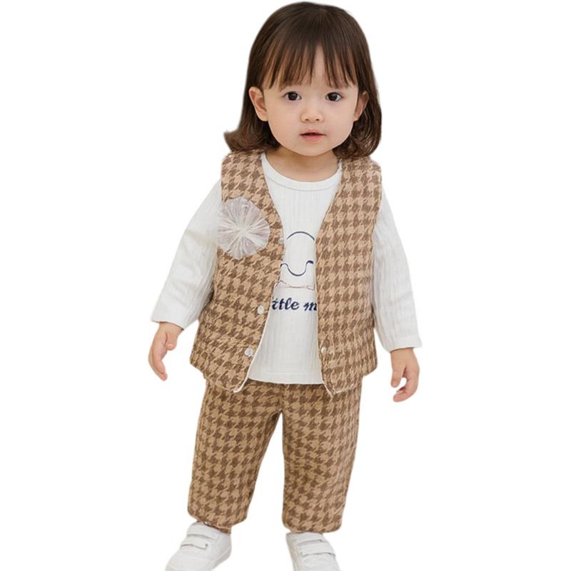 25437 toptan 9/24 aylık kız çocukları için mevsimlik yelekli üçlü takım elbise