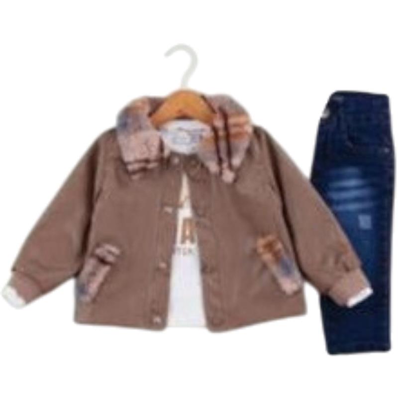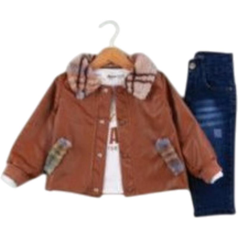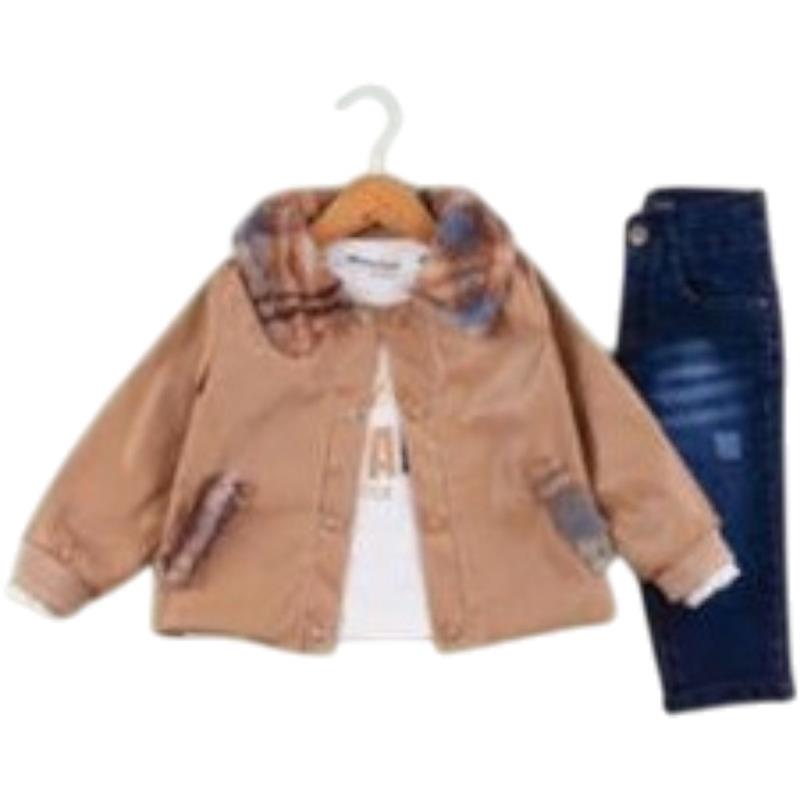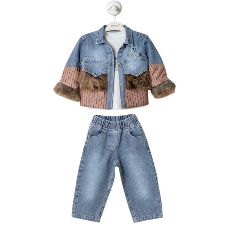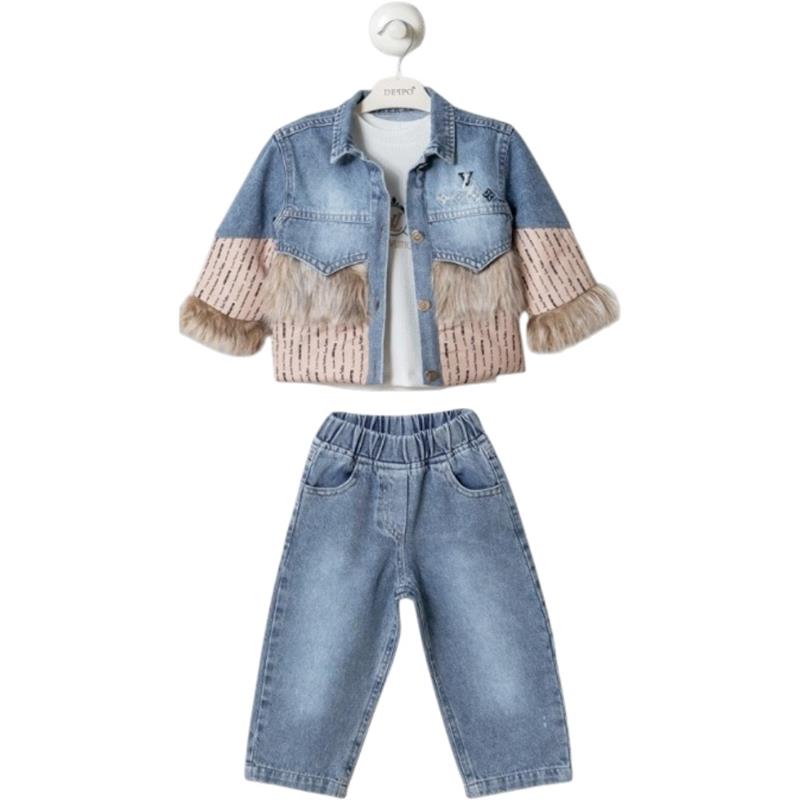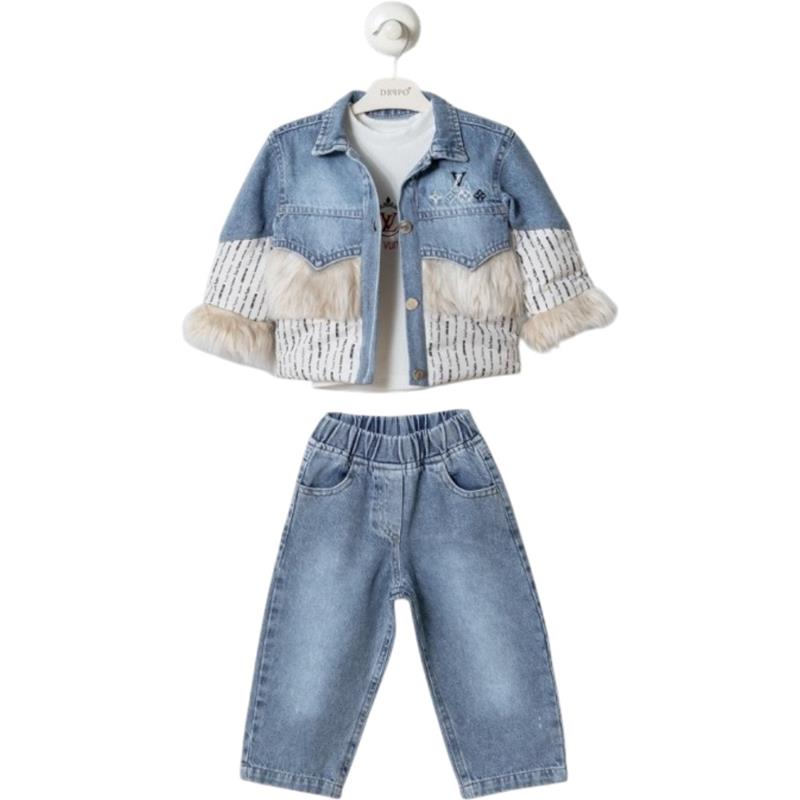 26318 toptan 2/5 yaş arası kız çocuklar için gömlekli üç parçalı mevsimlik kot takım elbise