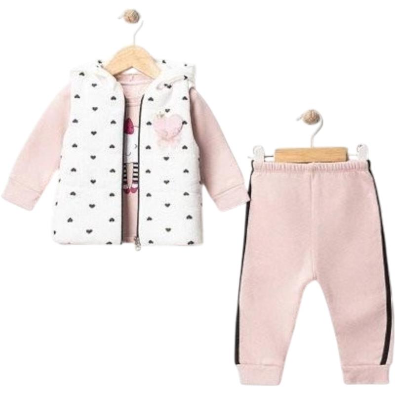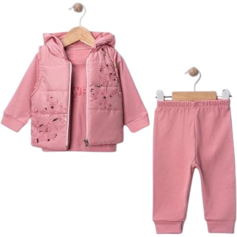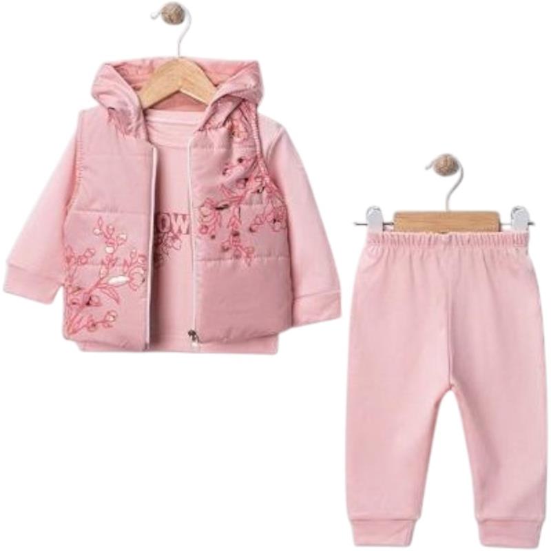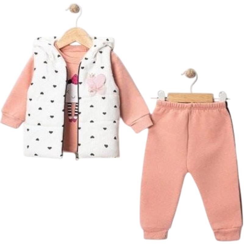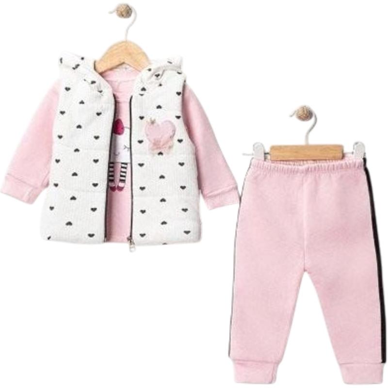 4158 toptan 9/24 aylık kız bebekler için yelekli mevsimlik üçlü takım