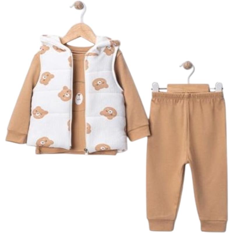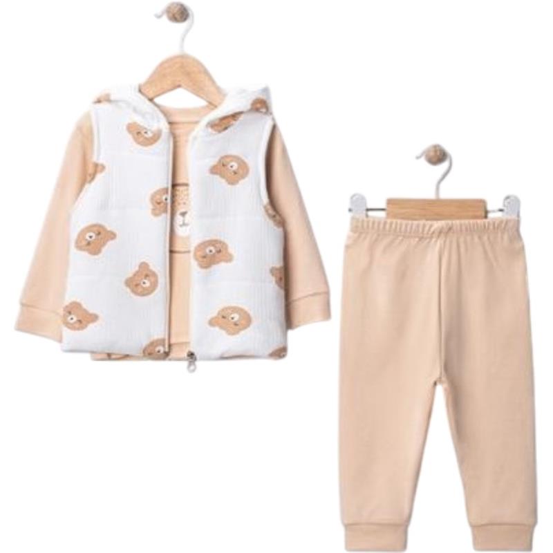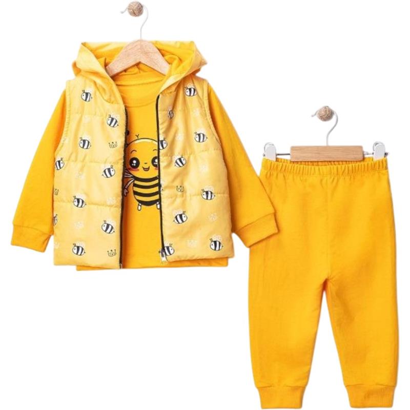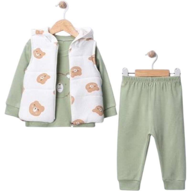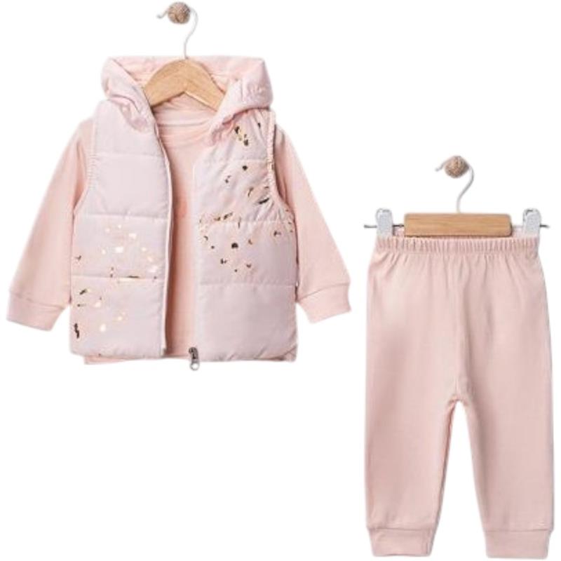 4158 toptan 9/24 aylık kız bebekler için yelekli mevsimlik üçlü takım