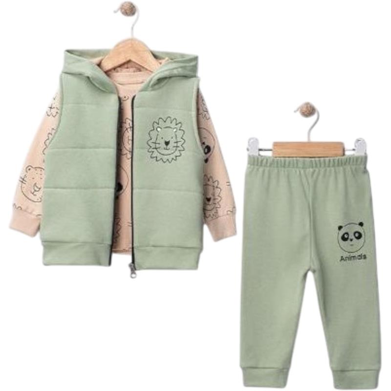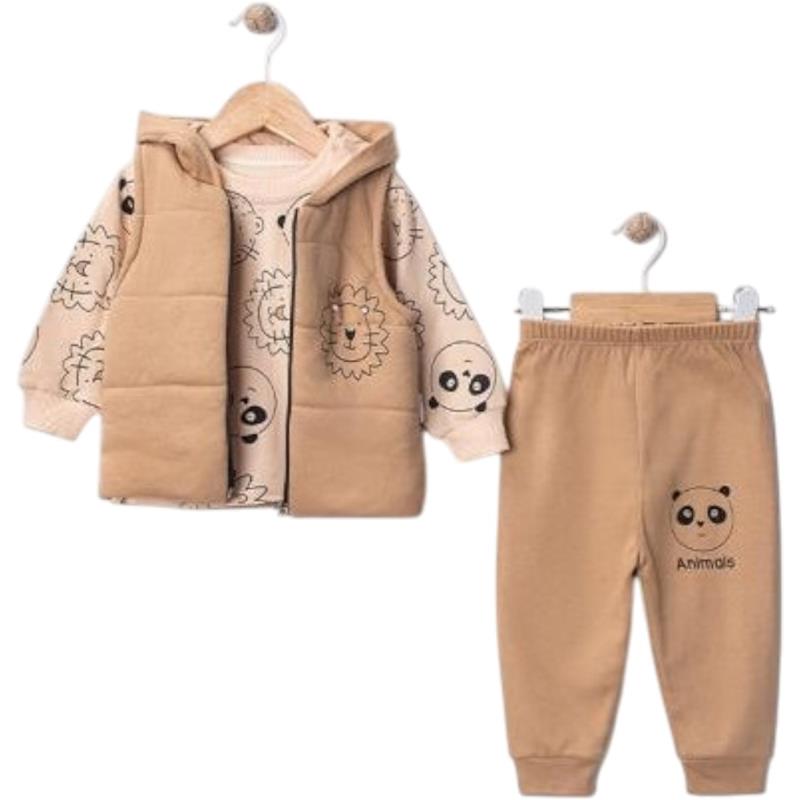 25433 toptan 6/24 aylık bebekler için aslan desenli mevsimlik üçlü takımlar
