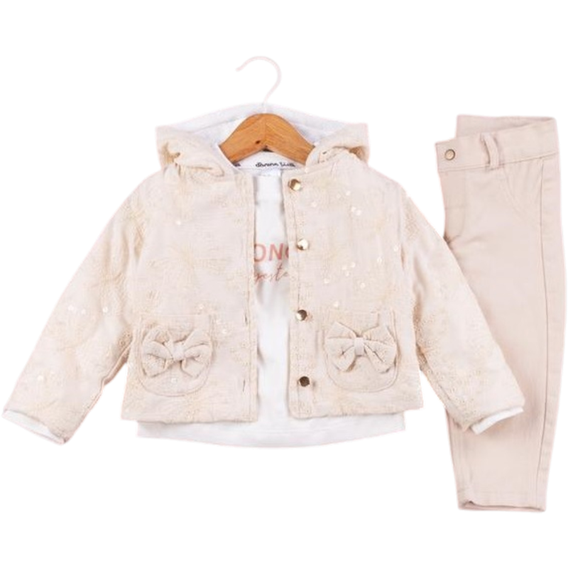 50704 toptan 6/24 aylık kız çocuklar için üç parçalı mevsimlik takım elbise