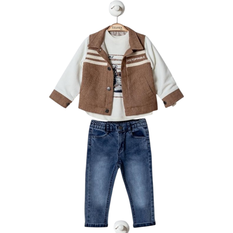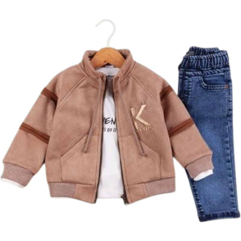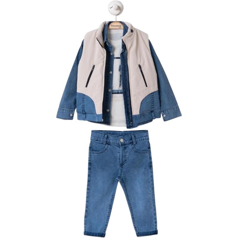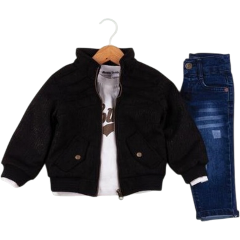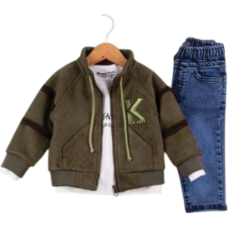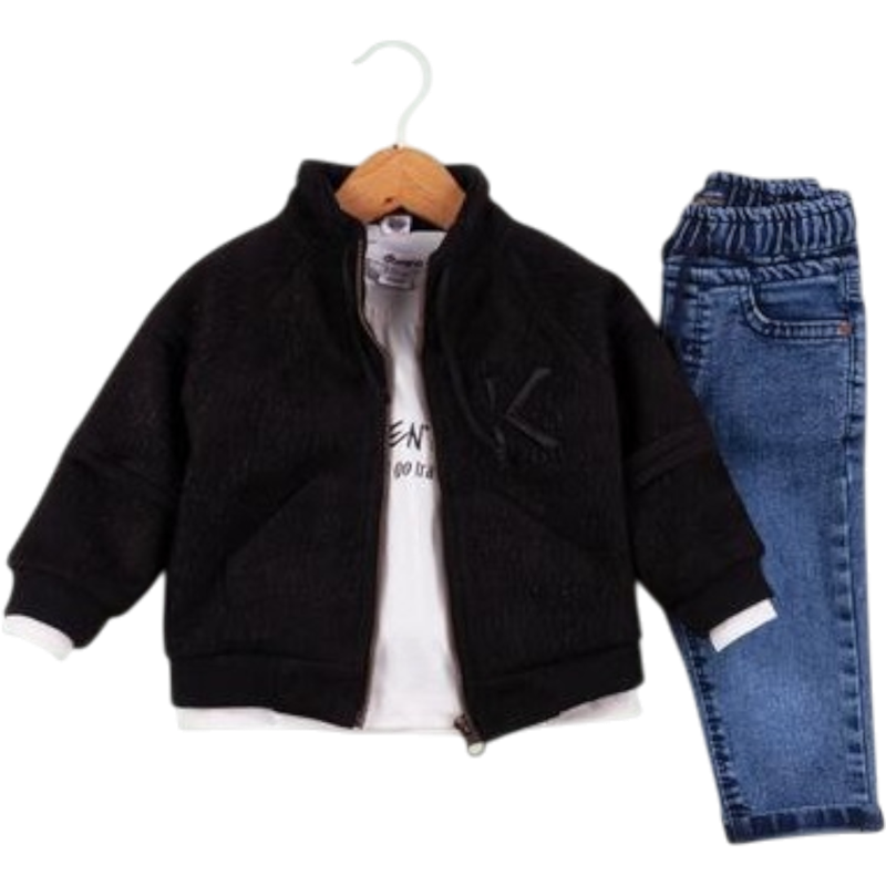50590 toptan 2/5 yaş erkek çocuklar için hırkalı,tişörtlü,kot pantolonlu üçlü takım elbise