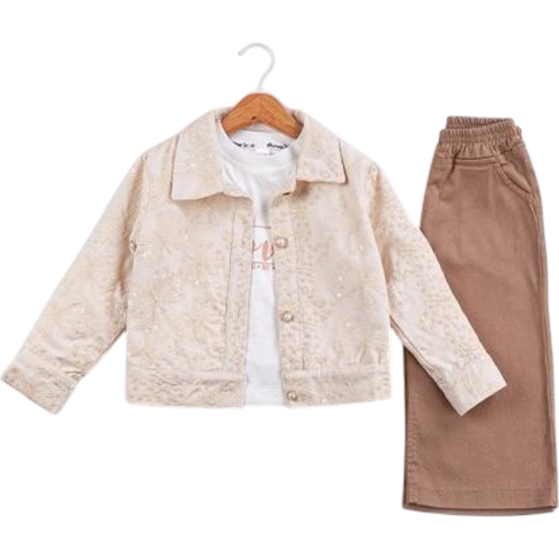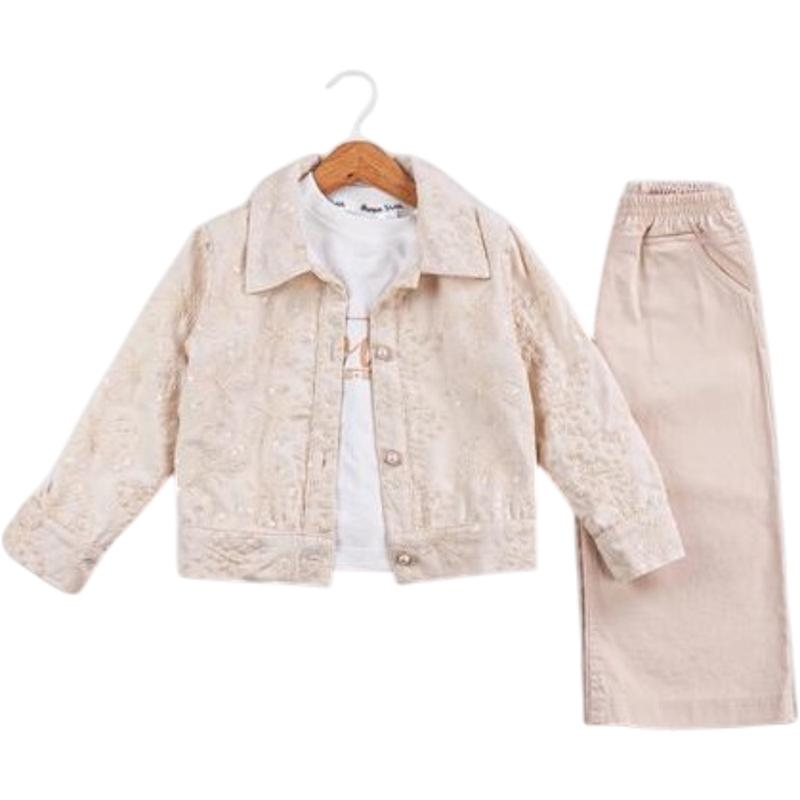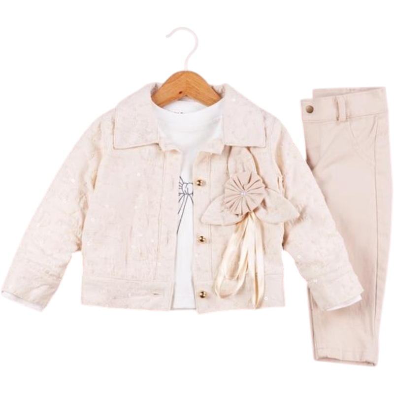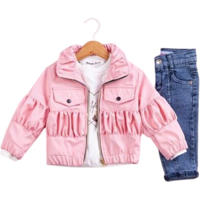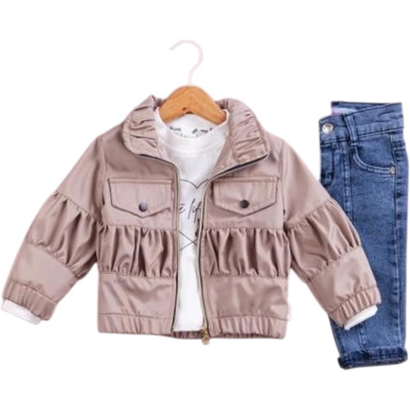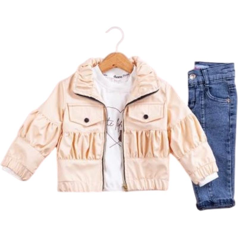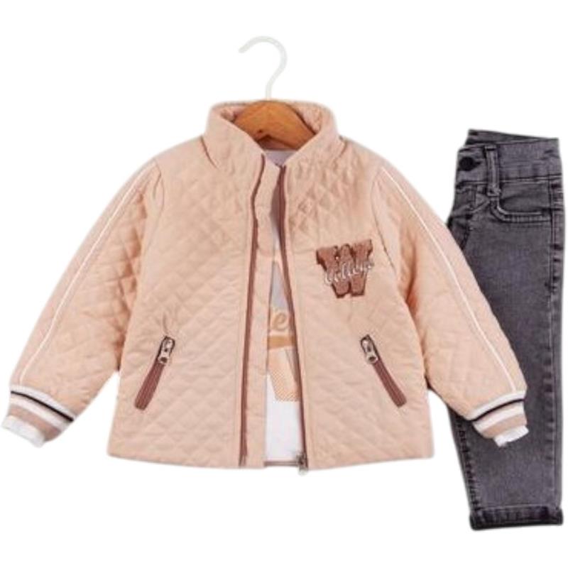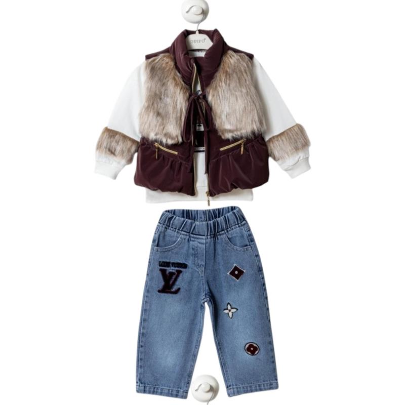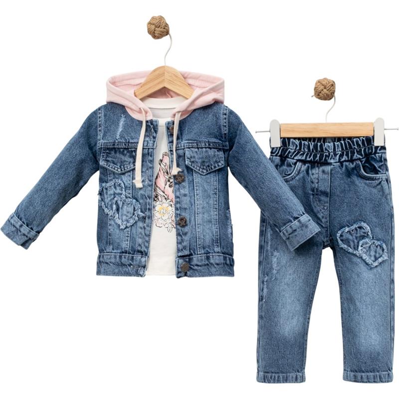 50691 toptan 6/24 aylık kız çocuklar için üç parçalı kot pantolonlu mevsimlik takım elbise