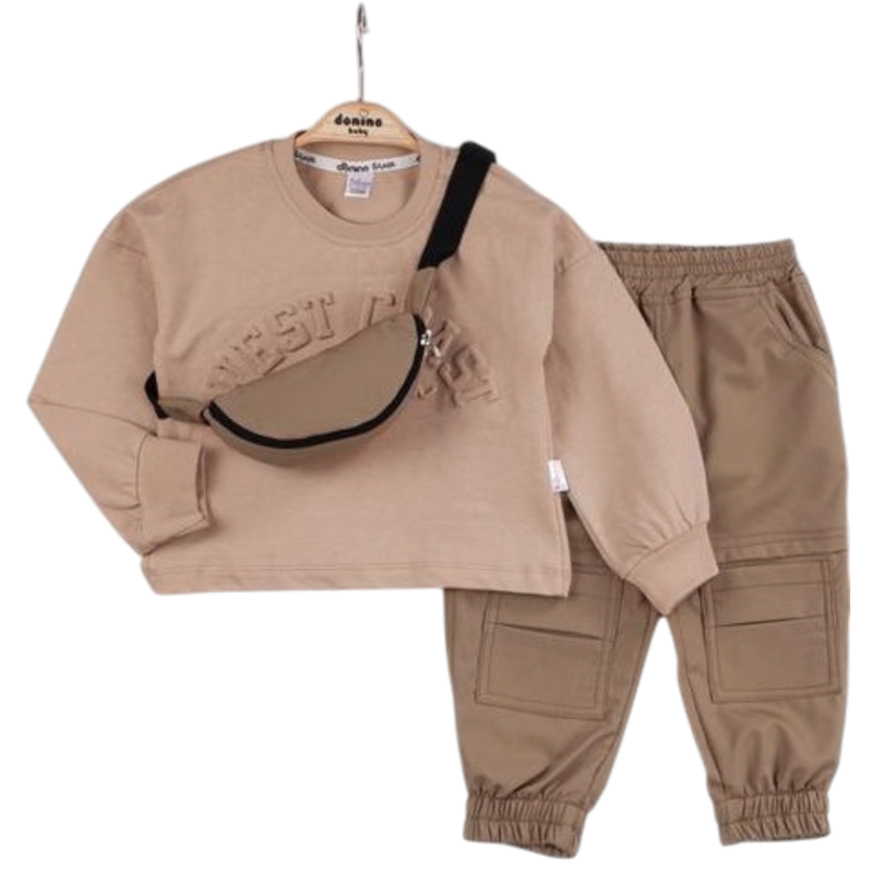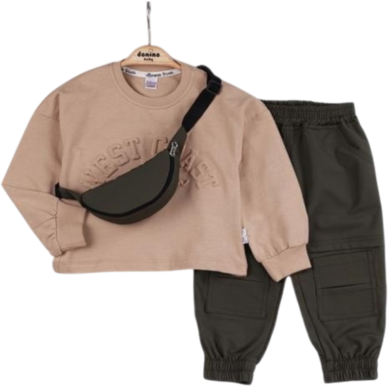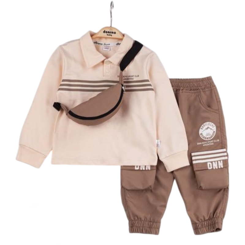 50598 toptan 2/5 yaş arası erkek çocuklar için çantalı iki parçalı mevsimlik takım elbise