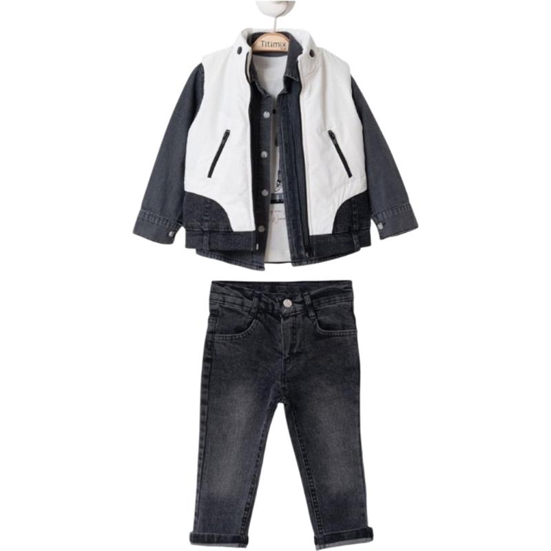 50695 toptan 6/24 aylık erkek çocuklar için üç parçalı kot pantolonlu mevsimlik takım elbise