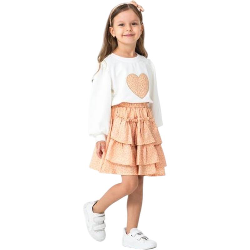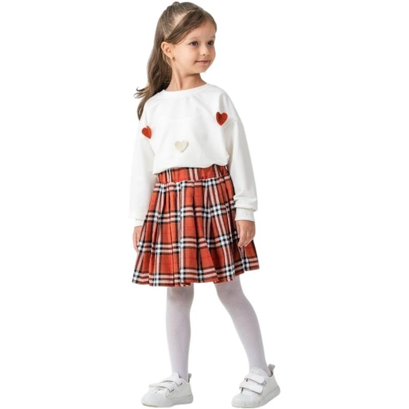 6342 toptan 6/9 yaş arası kız çocuklar için mevsimlik etekli tişörtlü iki parçalı takım elbise