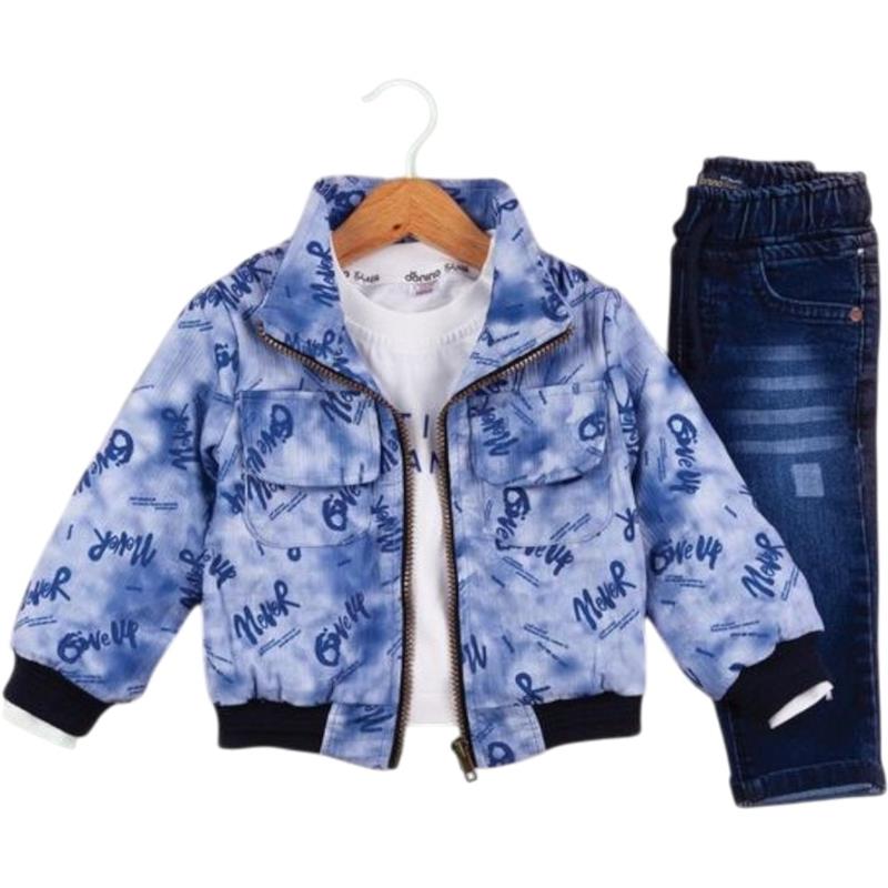 50697 toptan 6/24 aylık erkek çocuklar için üç parçalı kot pantolonlu mevsimlik takım elbise