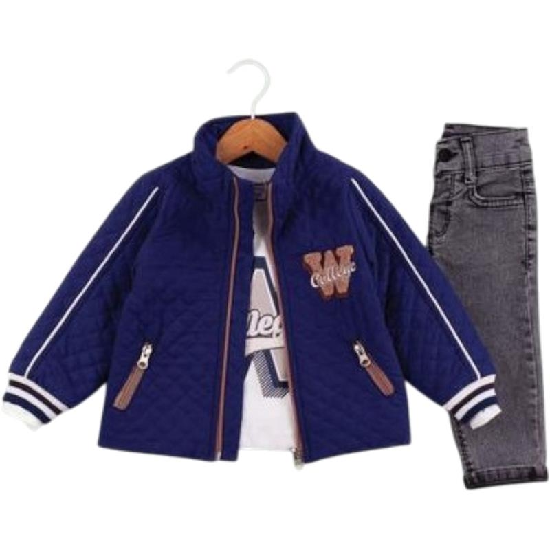 50675 toptan 6/24 aylık erkek çocuklar için üç parçalı kot pantolonlu mevsimlik takım elbise