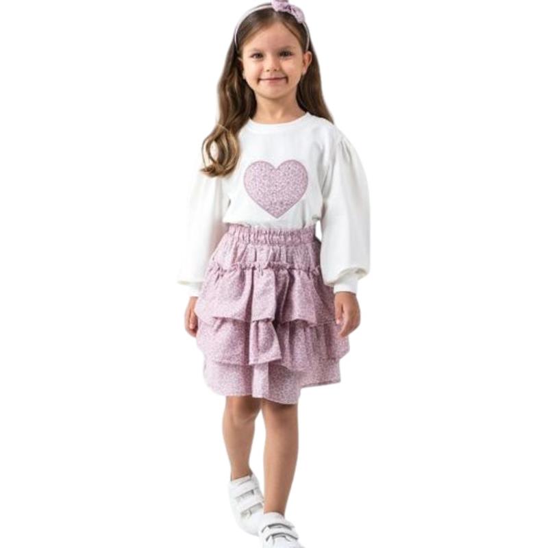 6359 toptan 2/5 yaş arası kız çocuklar için mevsimlik etekli tişörtlü iki parçalı takım elbise