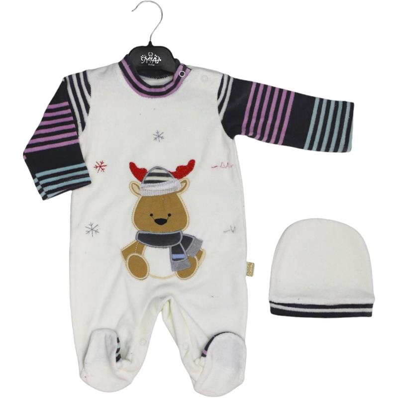 5118 geyik figür içi yün bebek tulum toptan 3/12 ay