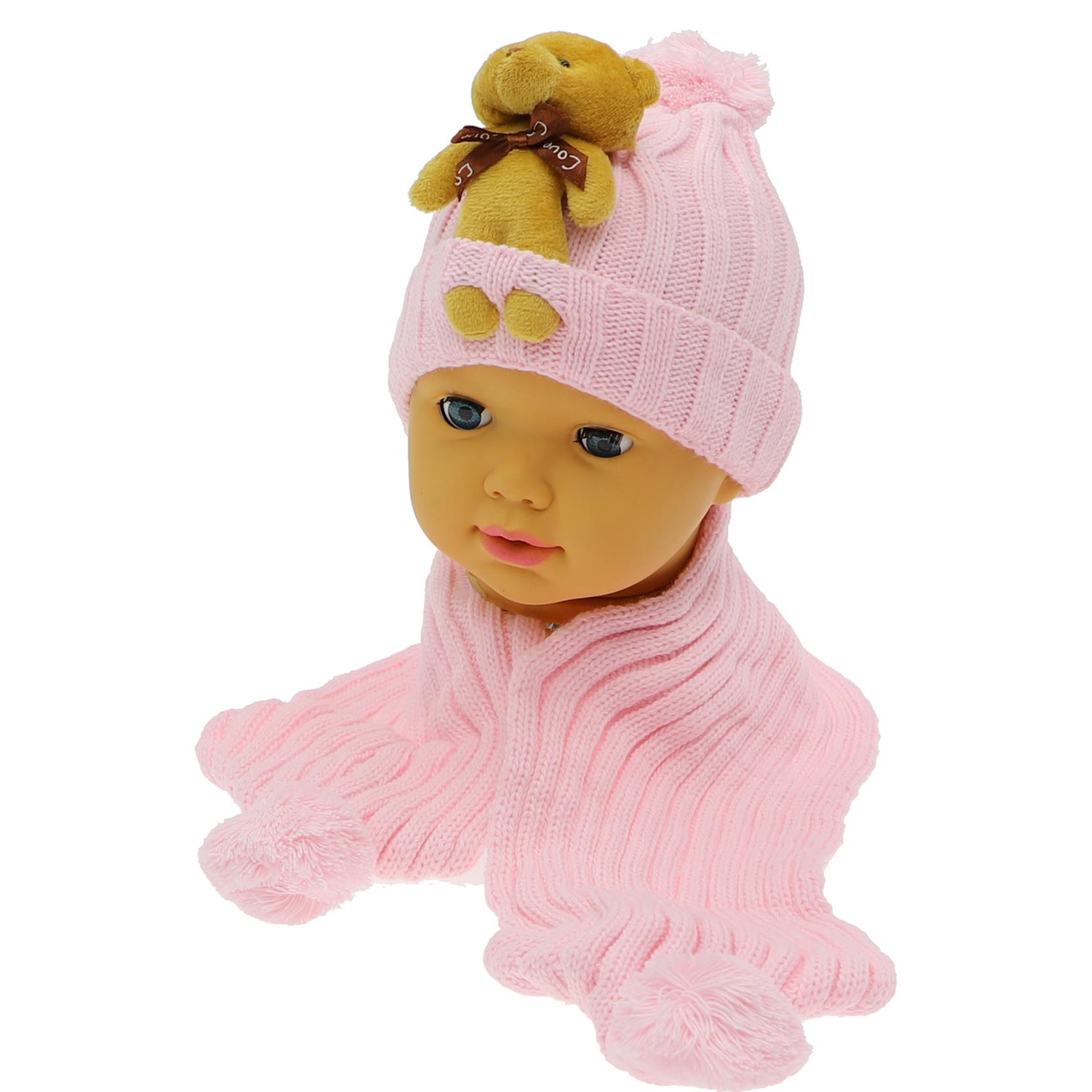 1219 Golden ayıcık aksesuarlı çocuk şapka atkı set toptan