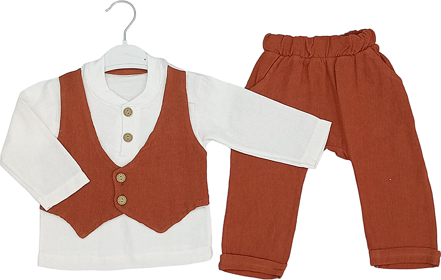 170 MÜSLİN SAHTE YELEK BEBE TAKIM 9/24 AY