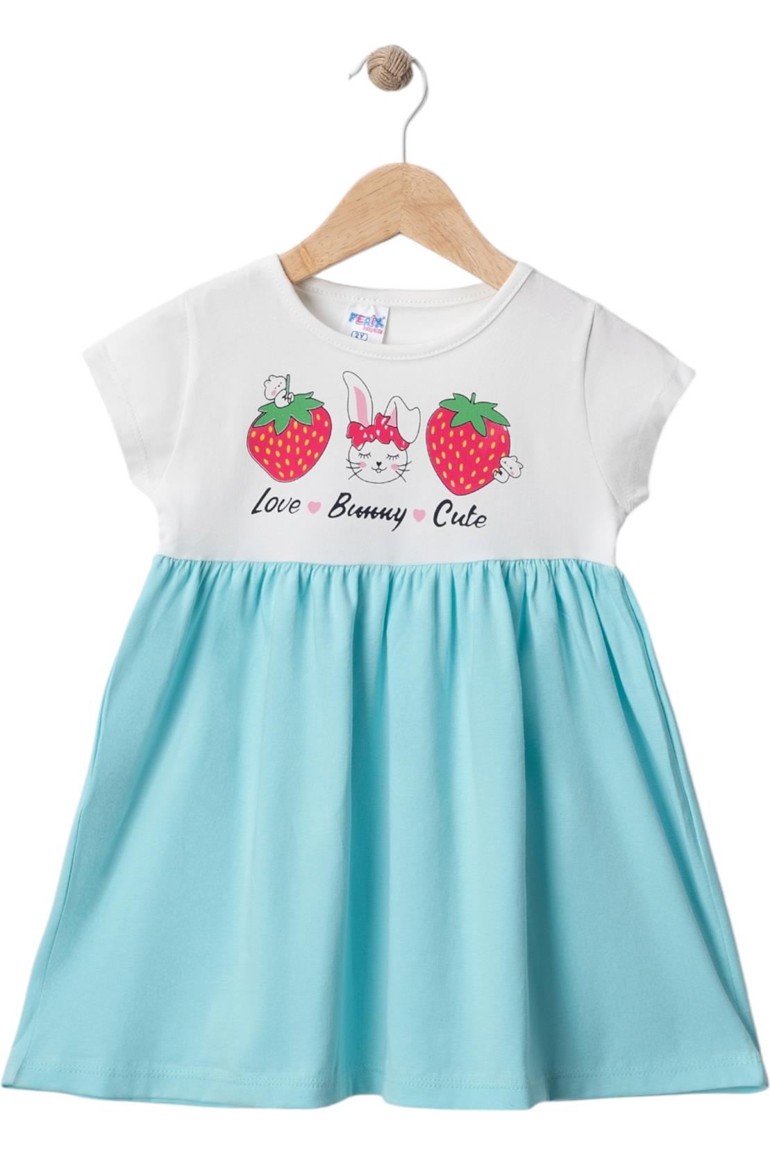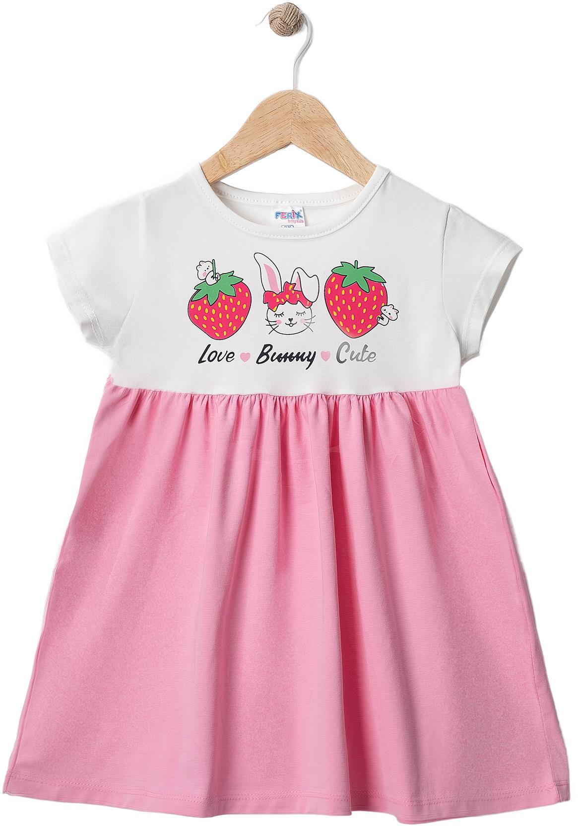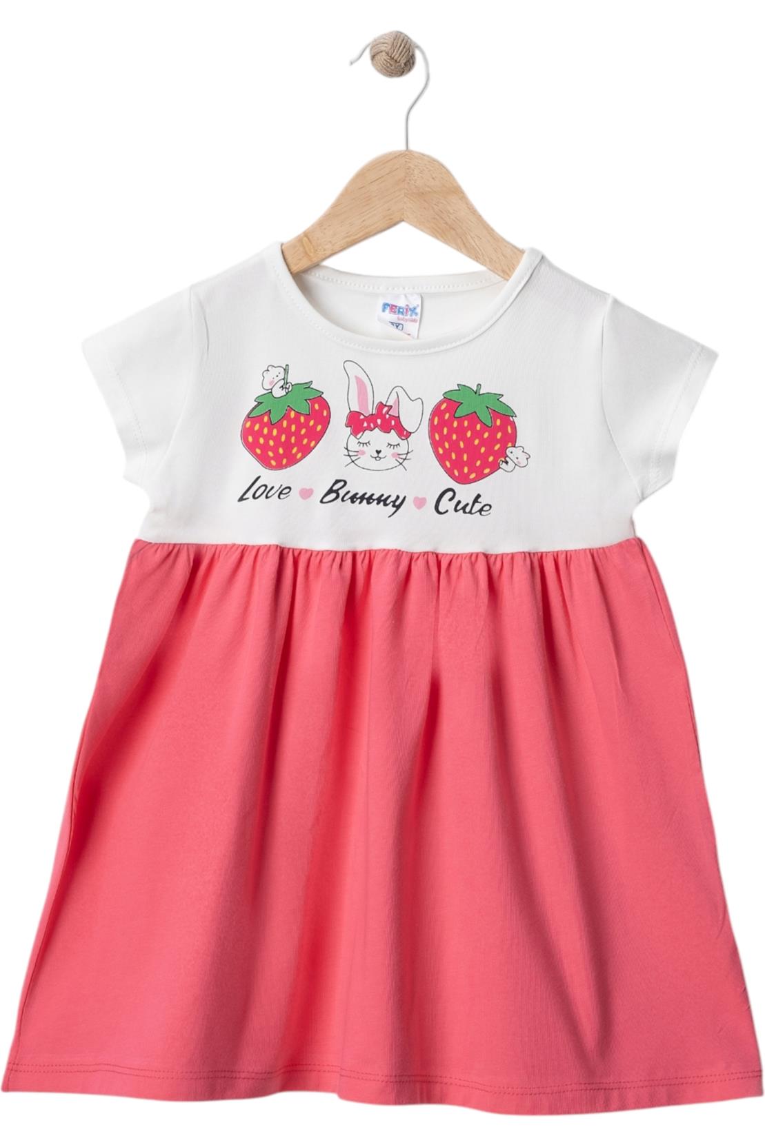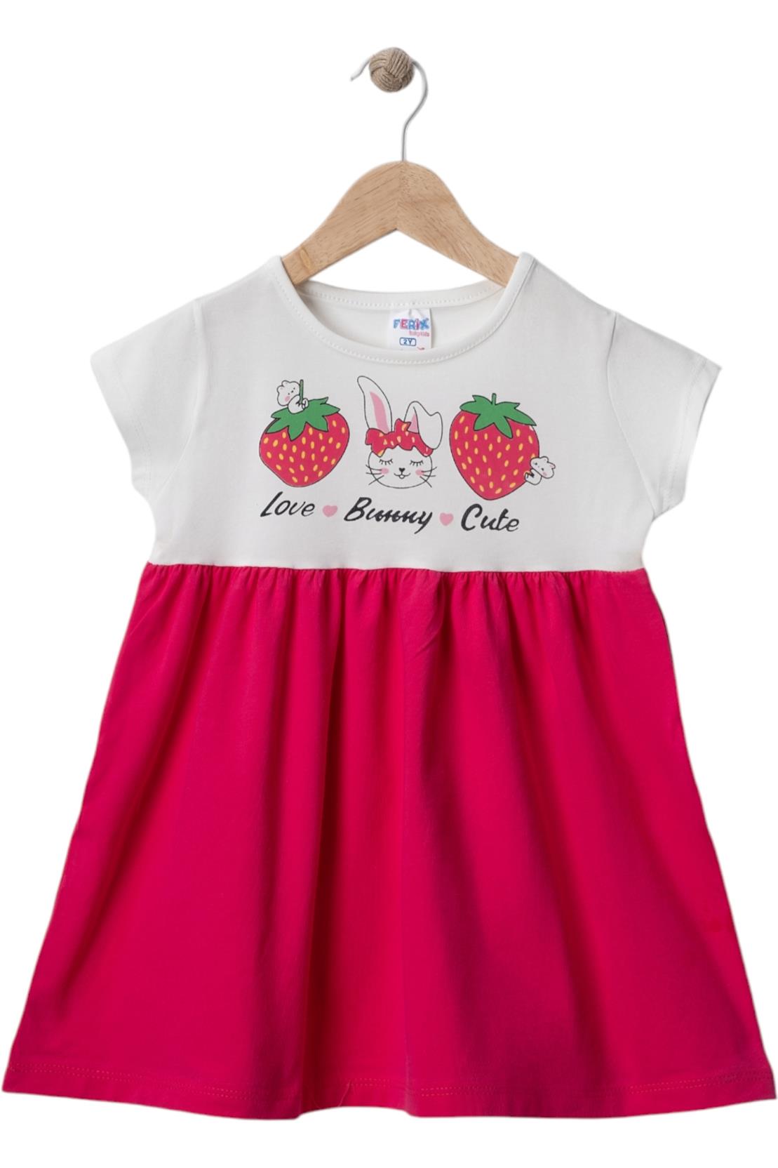 2501 yazlık çilek baskılı kız çocuk elbise toptan 2/5 yaş