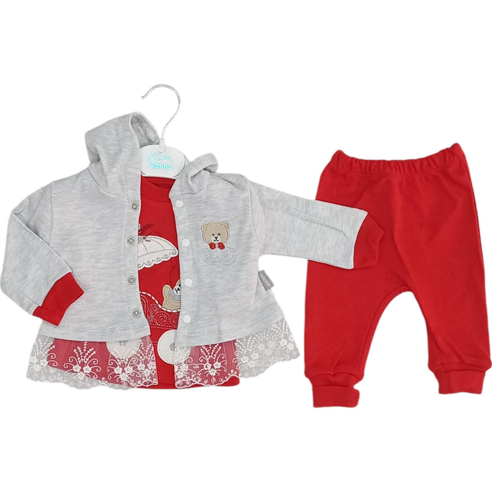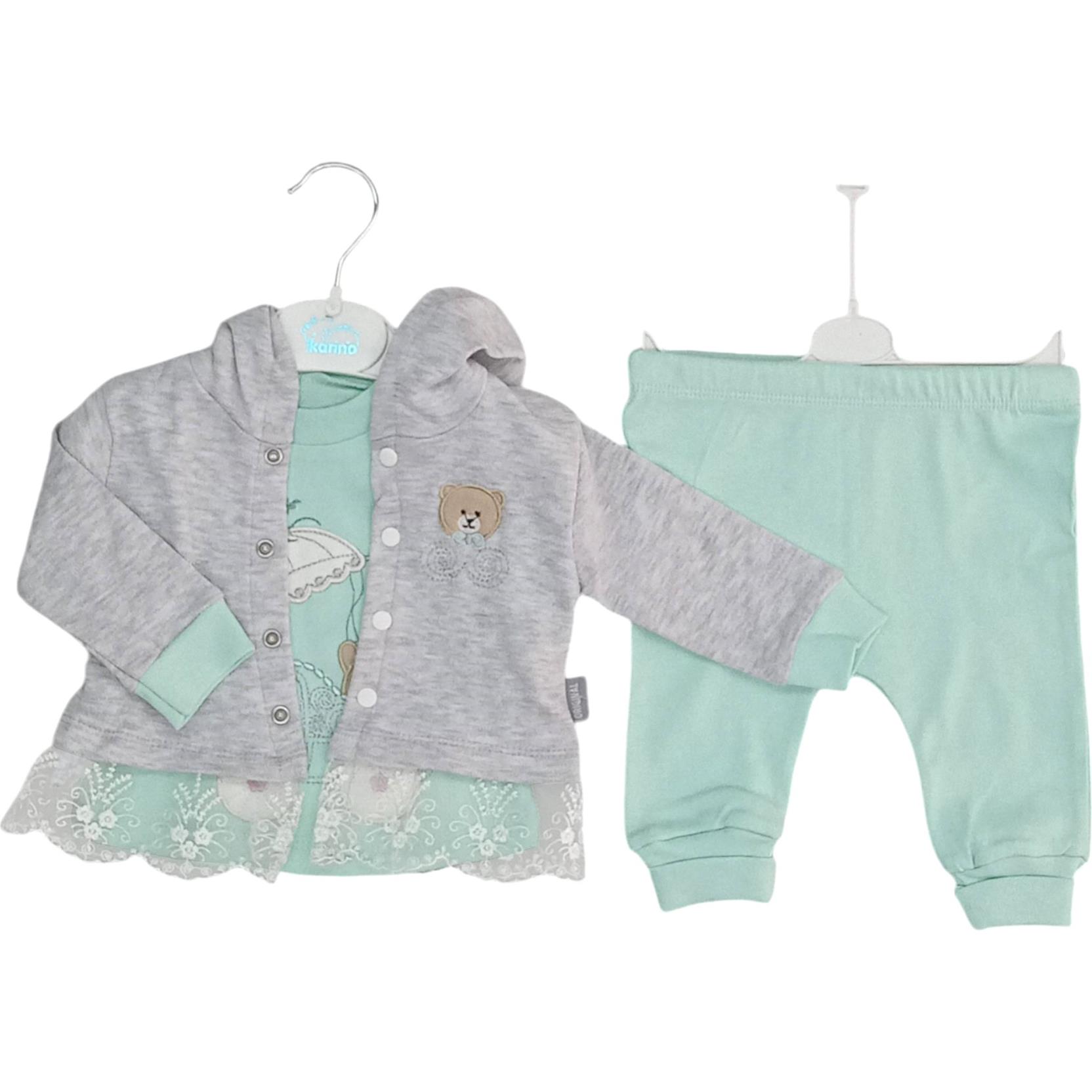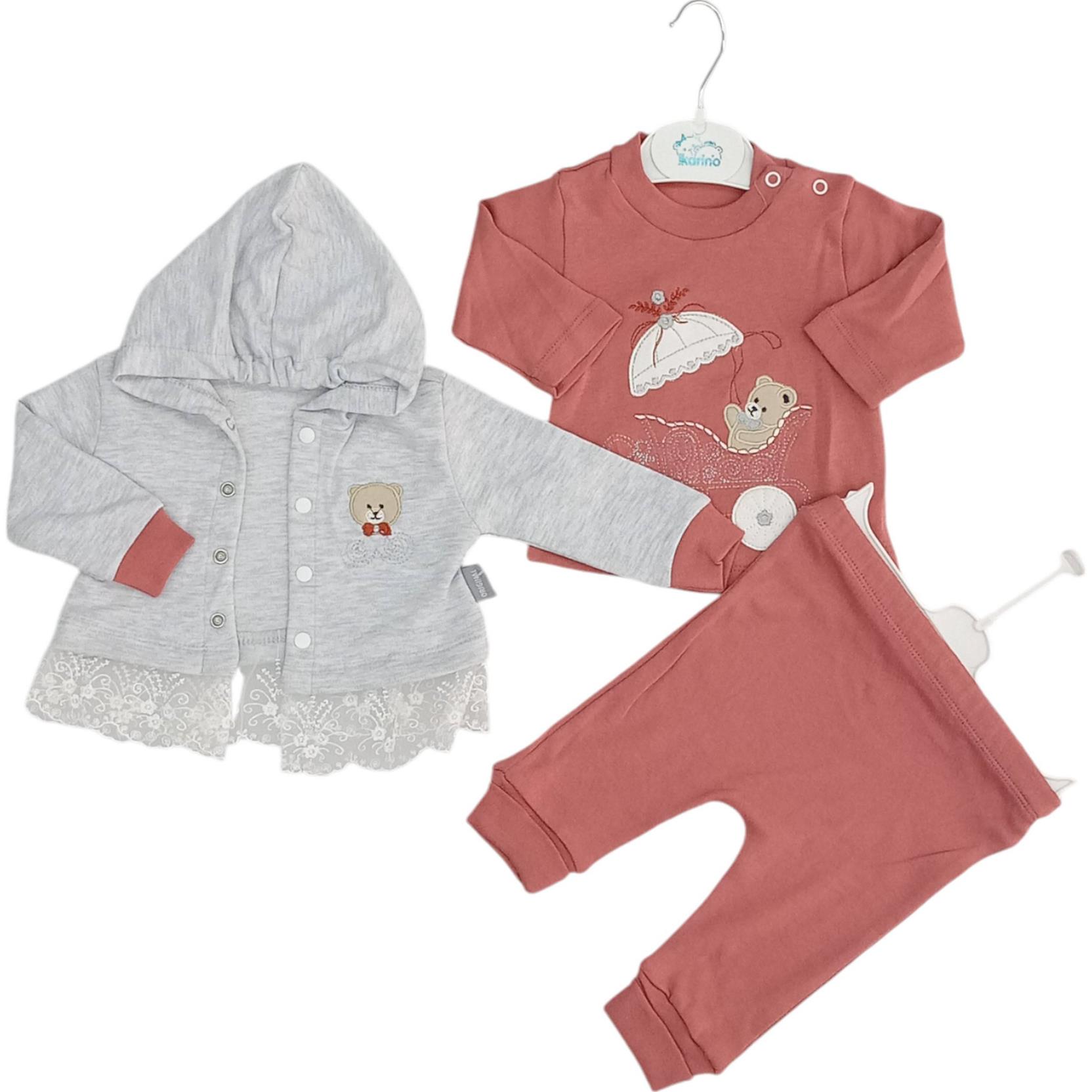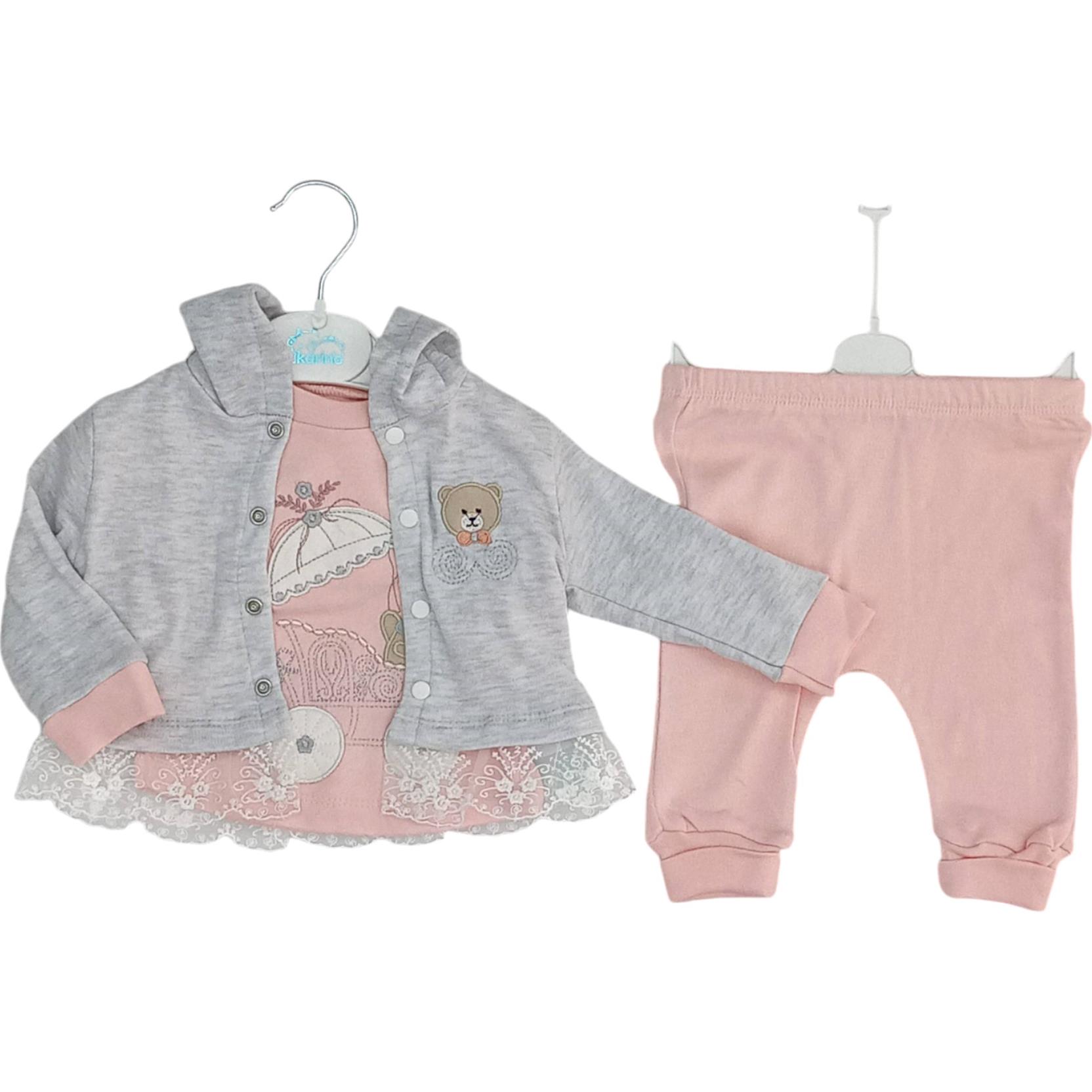 254 Kapşonlu lüks kız bebek takım toptan 3-6-9 ay - kapşonlu yelek + sweat + pantolon full lüks takım toptan satış. imalatçı firma