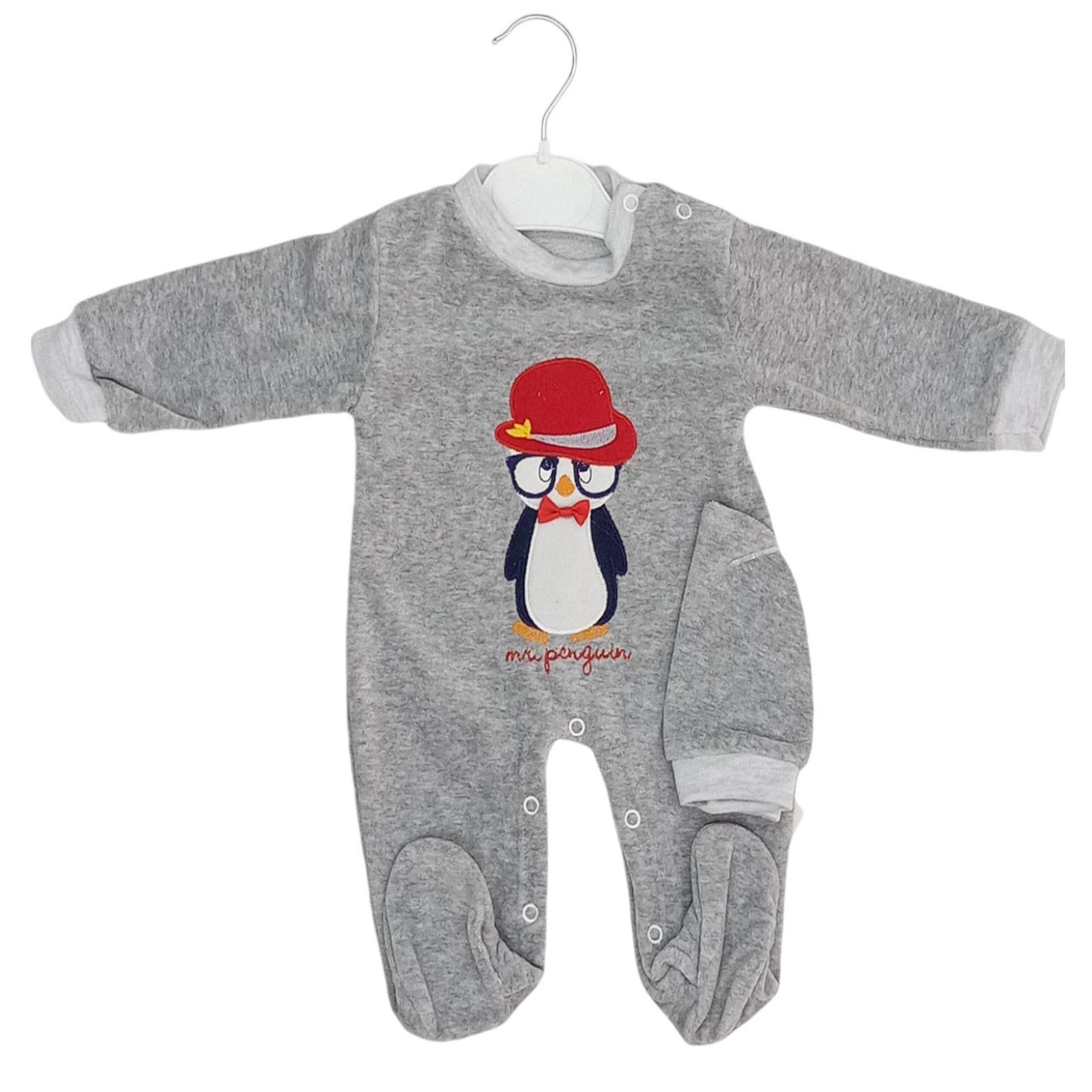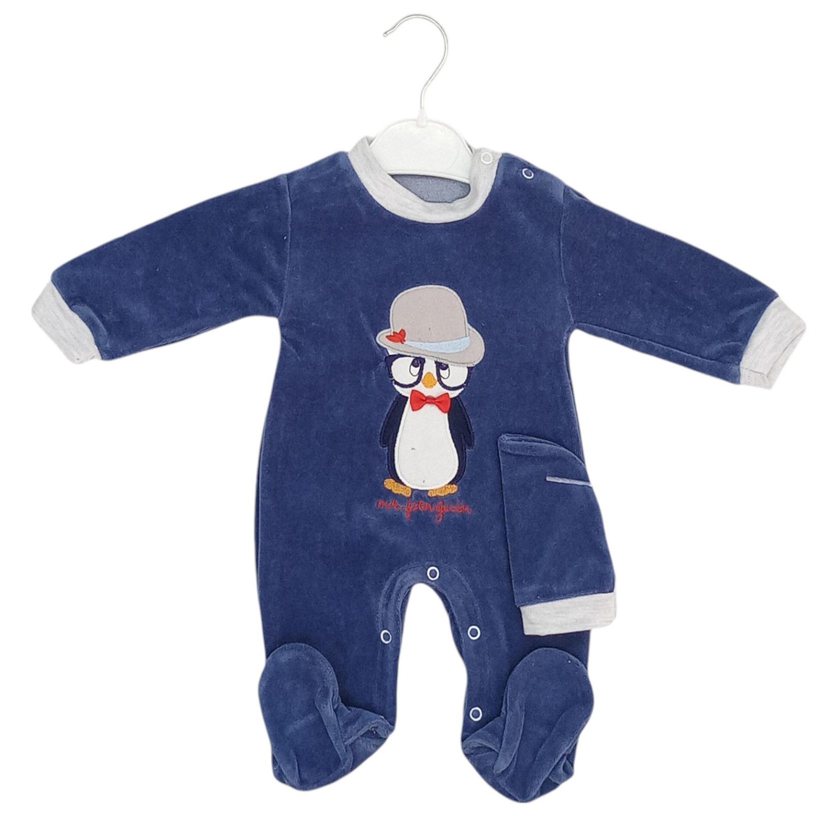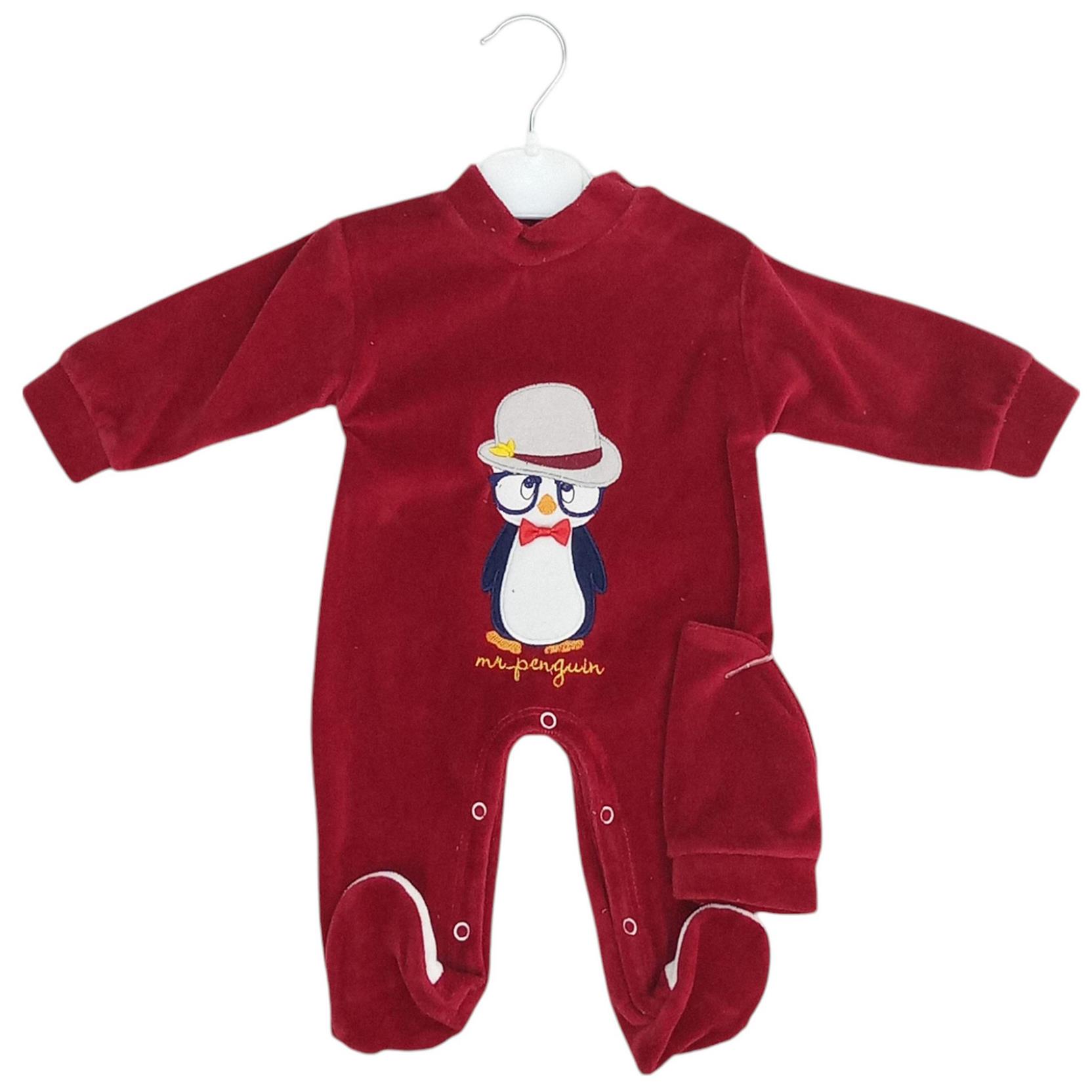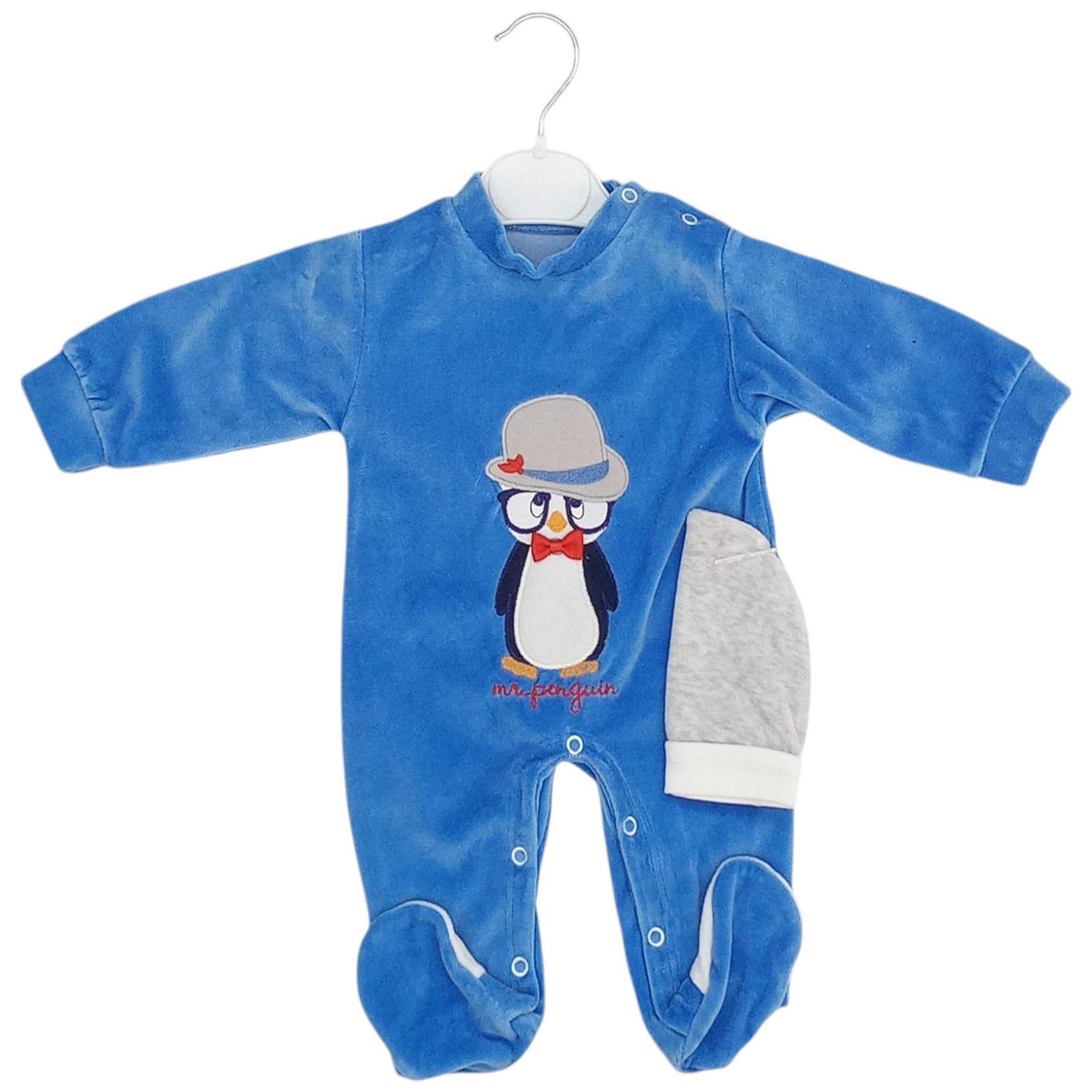 610 penguen nakışlı bebe tulum toptan 3-6-9 ay